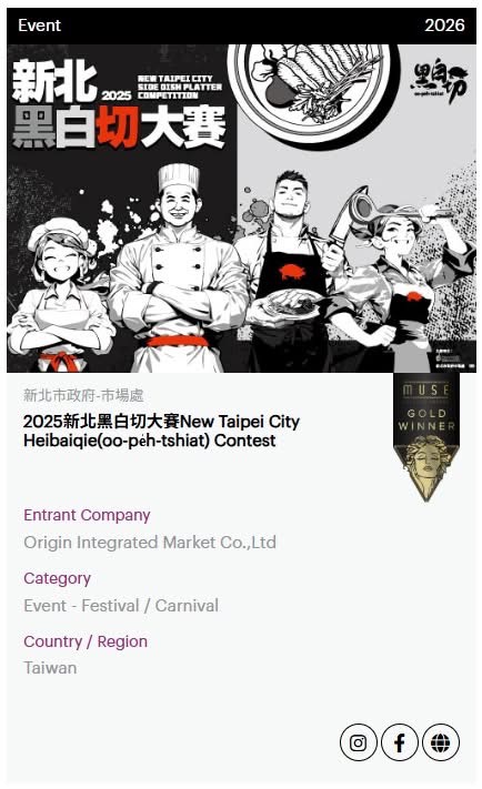 ▲新北黑白切大賽不僅在國內掀起美食風潮,更成功走向國際。憑藉將傳統飲食文化轉化為現代城市品牌的卓越策劃,2025年第一次舉辦即榮獲國際知名「美國繆思設計獎(MUSE Design Awards)」金獎肯定。(圖/新北市市場處 提供)