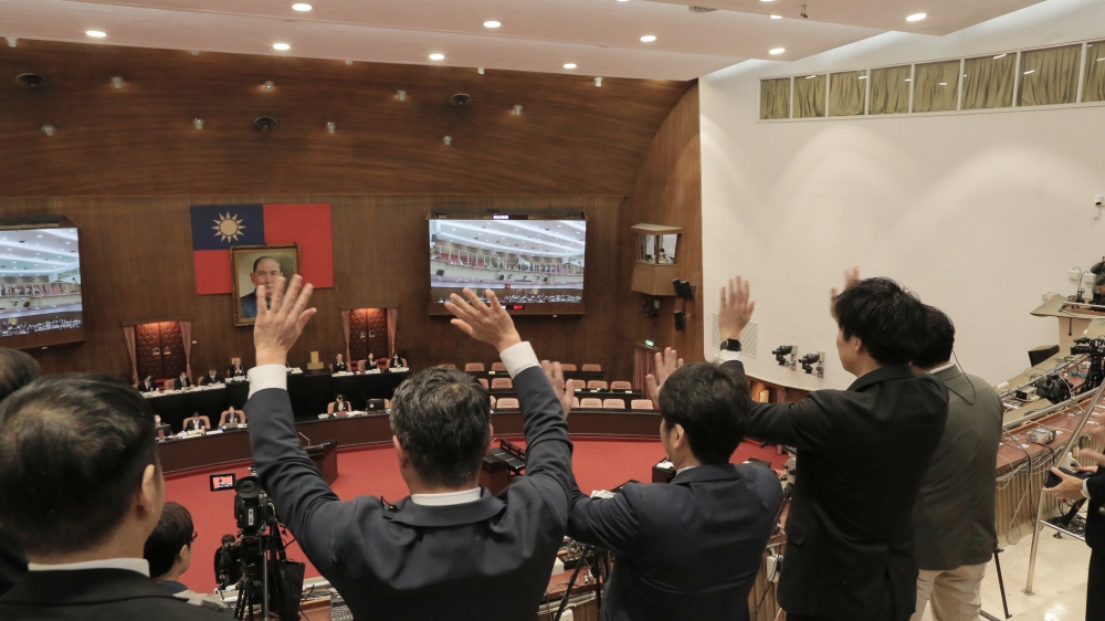 ▲院會中立法院長韓國瑜以實況畫面歡迎島根縣議會議員到訪。(圖/KKH-bridge提供)
