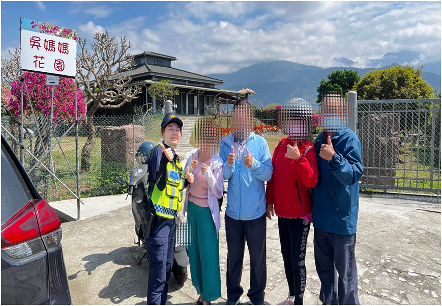 經員警查詢,這位年逾七旬,家住高雄市苓雅區的李姓婦人表示,他們兩對七十多歲的夫妻,相約騎機車,從高雄市來到屏東縣內埔鄉遊玩,並預定前往「吳媽媽九重葛花園」,但因路況不熟,才會在中林村莊內迷路。還好有看到警車,第一時間就攔車求助。警方得知原因後,考量長者騎乘機車,加上路況不熟,恐生交通風險,於是主動帶路前往目的地,李姓婦人與同行友人對員警熱心幫忙深表感謝。