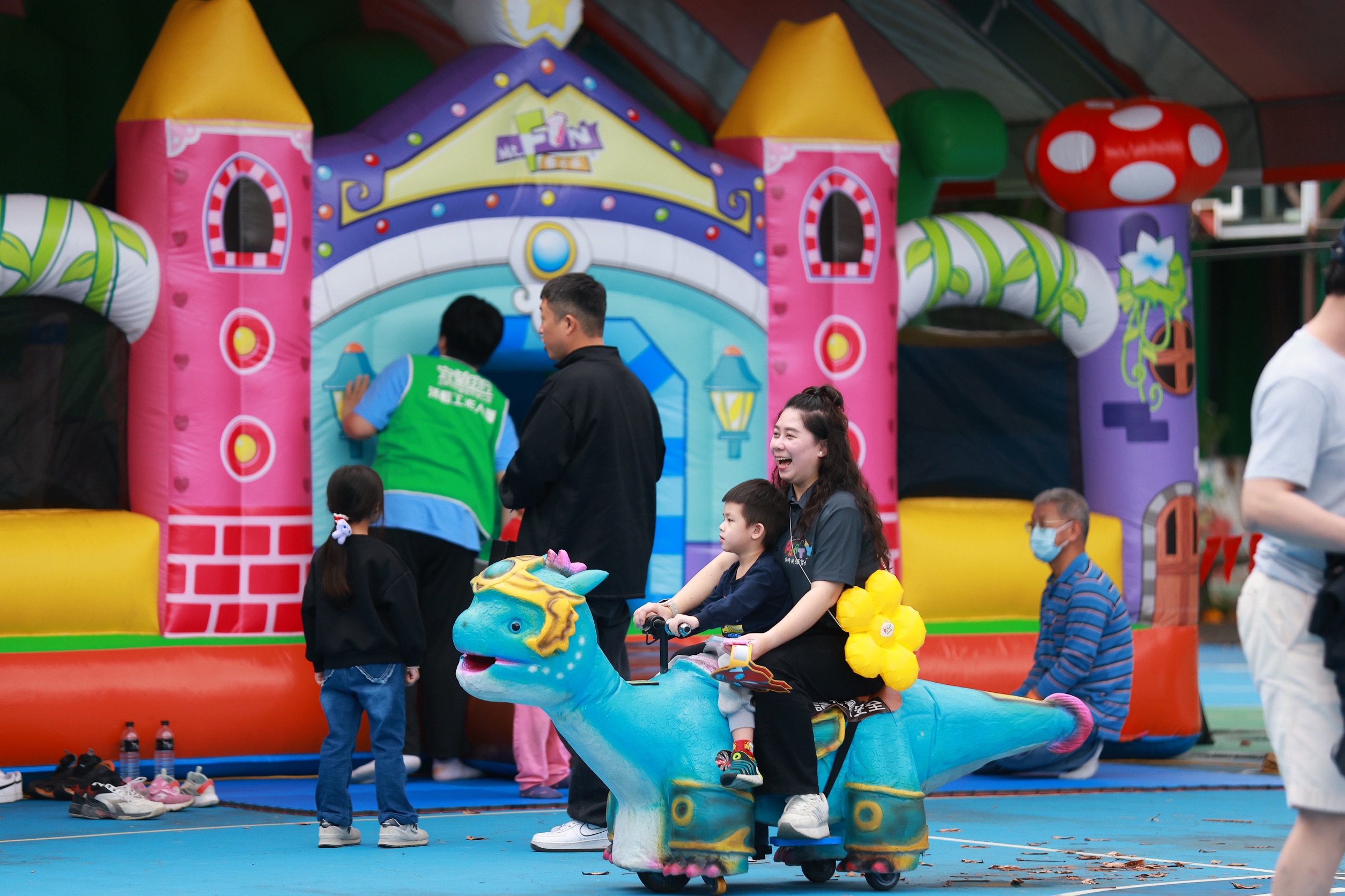 活動現場規劃多項親子互動設施,包括巨型氣墊遊樂區、主題氣墊闖關及多元體驗空間,並有公益市集,還有氣球互動、趣味表演及泡泡秀等節目,相互拉抬,炒熱現場氣氛。