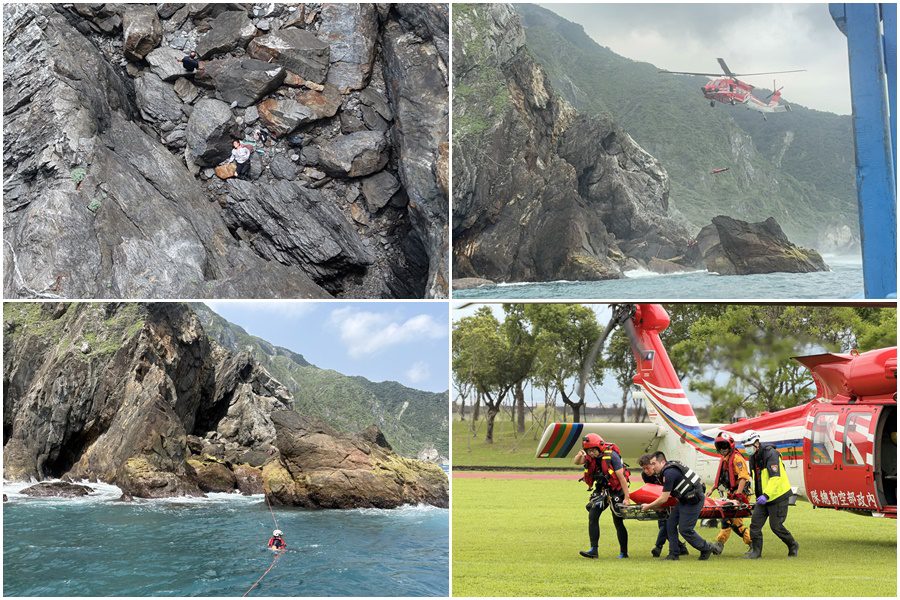 宜蘭縣消防局9時34分獲報,立即派遣第四大隊、蘇澳及馬賽分隊救災人車與空拍機前往救援,但因事故地點地勢險峻且位於岸際礁岩,現場指揮官評估,隨即聯繫海巡署調派附近船艇支援,搜救人員架設繩索接近傷患進行包紮止血及固定。