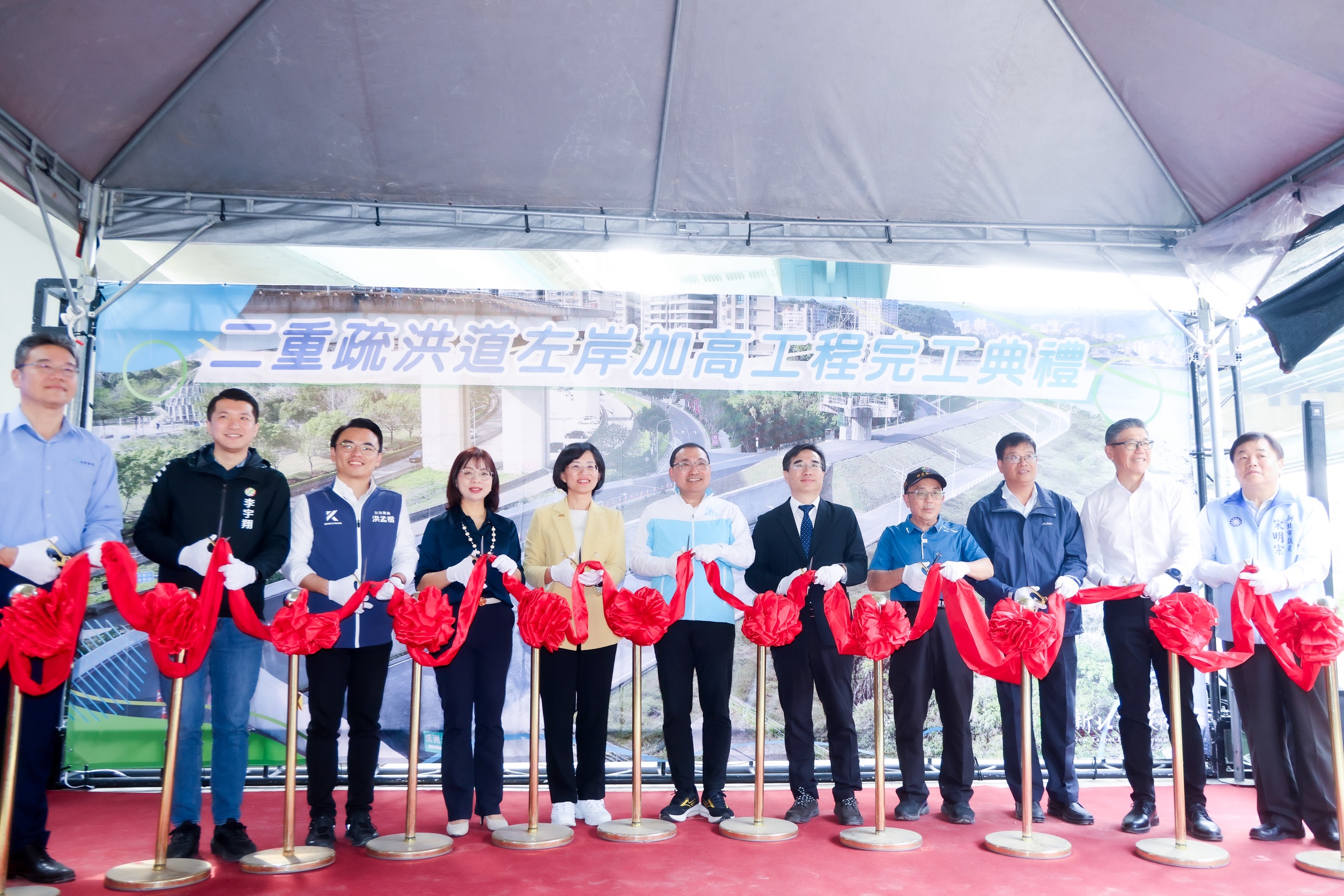 「二重疏洪道左岸加高工程」日前順利完工,新北市長侯友宜(30)日出席完工典禮,他感謝中央地方共同合作,讓工程得以順利完成,降低極端氣候帶來的強降雨威脅,也讓大臺北防洪體系邁向新里程碑。