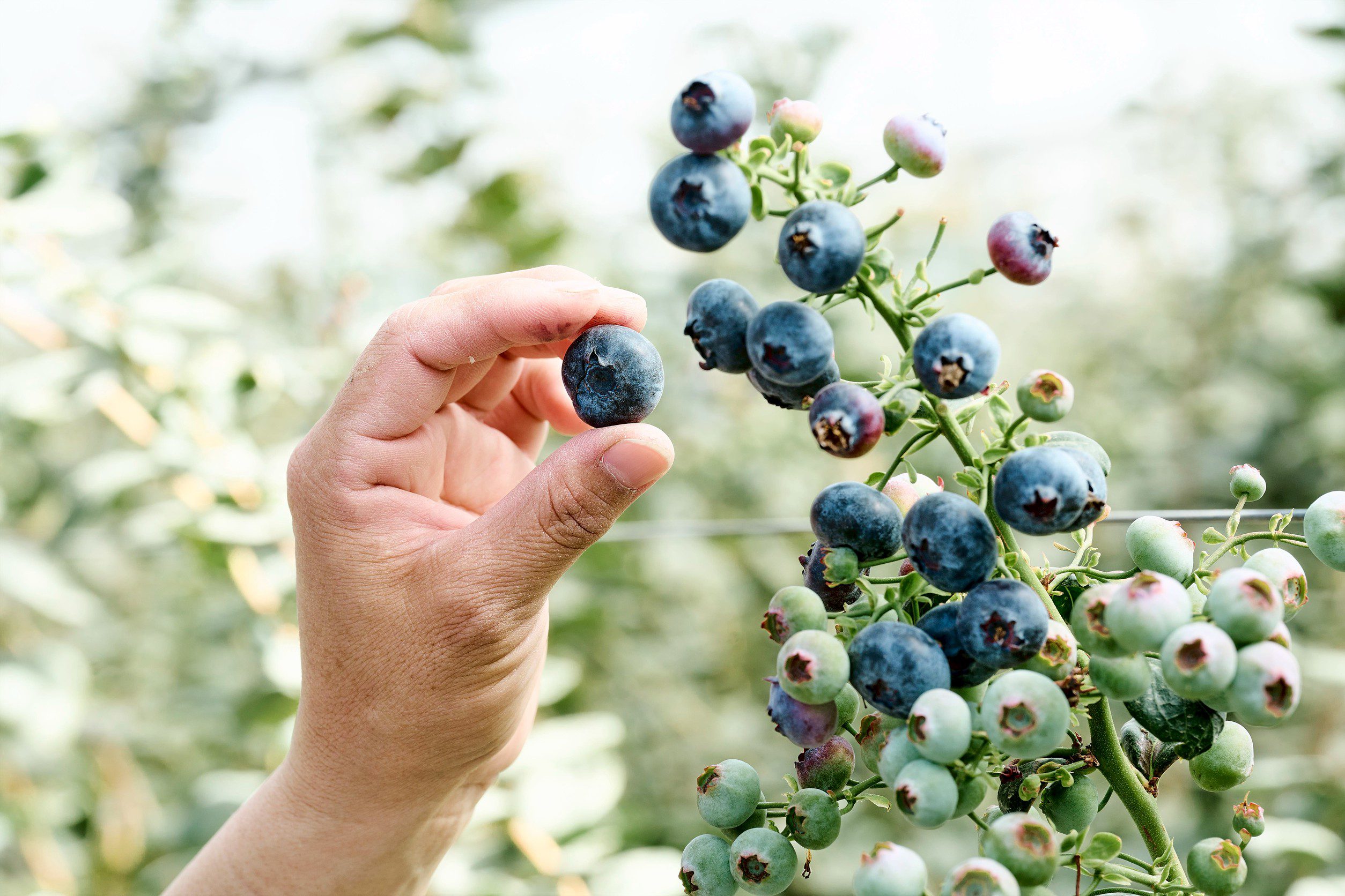 台灣藍莓在地種植,相較進口藍莓,更能自主進行嚴謹的品質把關。「山丘藍」堅持環境友善的栽培方式,以有機資材與生物防治管理病蟲害。