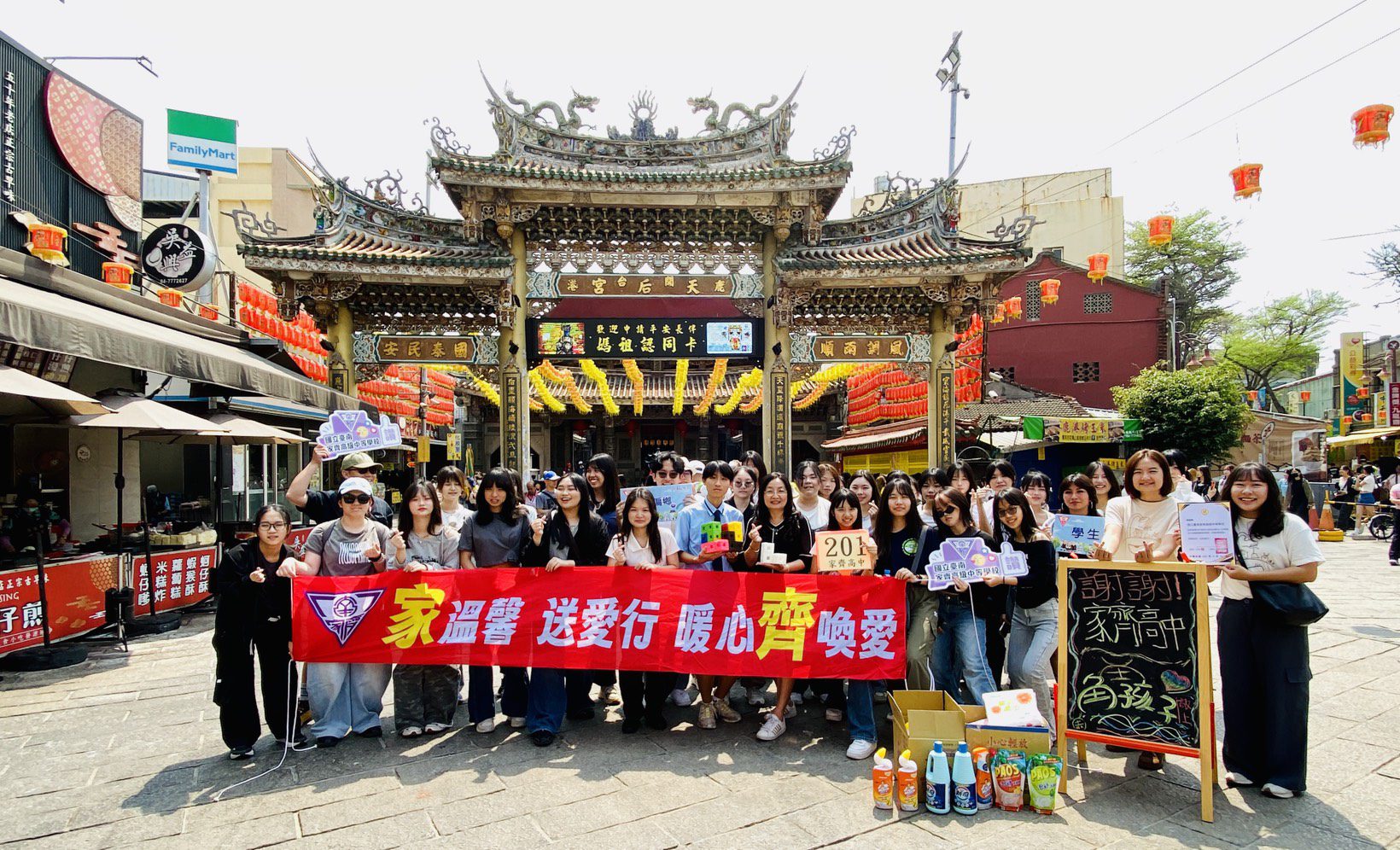 為培養學生關懷社會與實踐公益的精神,家齊高中二年級教育旅行持續結合公益行動,今年正式邁入第15年,此次活動在鹿港天后宮舉行,透過實地參訪與公益參與,讓學生在學習之餘,也能將愛心付諸行動;家齊高中校長陳韻如表示,學校長期推動教育旅行結合公益活動,不僅拓展學生視野,更重要的是培養學生的同理心與社會責任感,十五年來,透過一屆屆學生的接力參與,讓「家溫馨 送愛行 暖心齊喚愛」的理念深植人心。