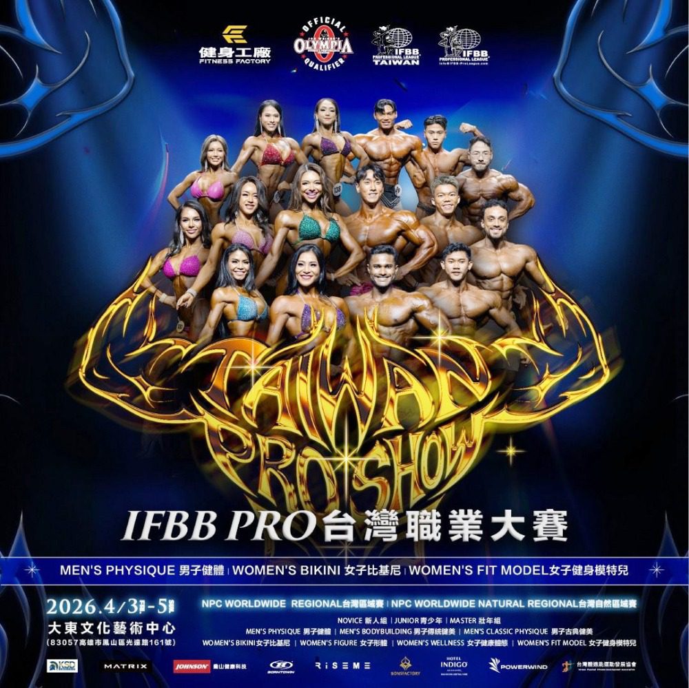 2026年台灣健美賽季正式點燃戰火!「NPC WORLDWIDE REGIONAL區域賽/NPC WORLDWIDE NATURAL REGIONAL自然區域賽/IFBB PRO 台灣職業大賽」將於4月3日至5日,一連三天在高雄大東文化藝術中心盛大登場,作為2026年台灣首場IFBB職業等級賽事,本次不僅集結國內外頂尖選手,更首度將「Fit Model職業賽」引進台灣,為健美運動寫下全新里程碑。