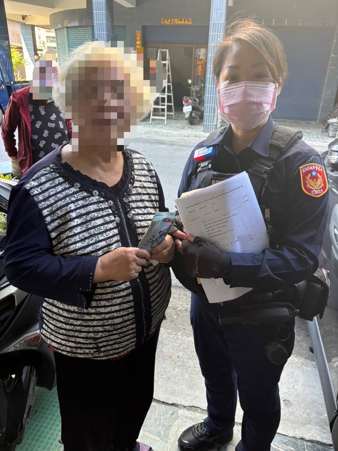「請問有人認識照片中這位長輩嗎?」陳員鍥而不捨的舉動感動了鄰里,在經過多方查證後,終於確認失主身分,並尋獲該名年約 70 歲的老婦人。當老婦人見到員警登門並遞上遺失的現金時,激動地紅了眼眶表示,原以為沒記車牌已徹底死心,「沒想到警察竟然會為了我一間一間地找,真的好感動!」
