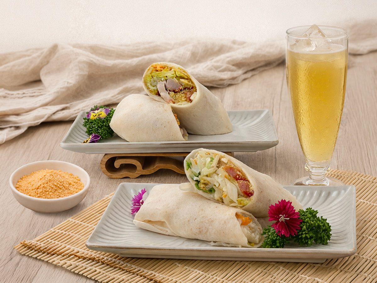 呼應清明時節,圓山首度推出限定版手作潤餅,以「老味新詮」為概念,將傳統記憶轉化為精緻料理。「海味烏魚子潤餅」融合鹹香烏魚子與爽脆蔬菜,口感層次分明;「咖哩燒肉潤餅」則結合濃郁咖哩與紅糟燒肉,香氣奔放、風味飽滿。活動期間限量供應,並搭配冷萃烏龍茶,為春日餐桌增添一抹溫潤儀式感。