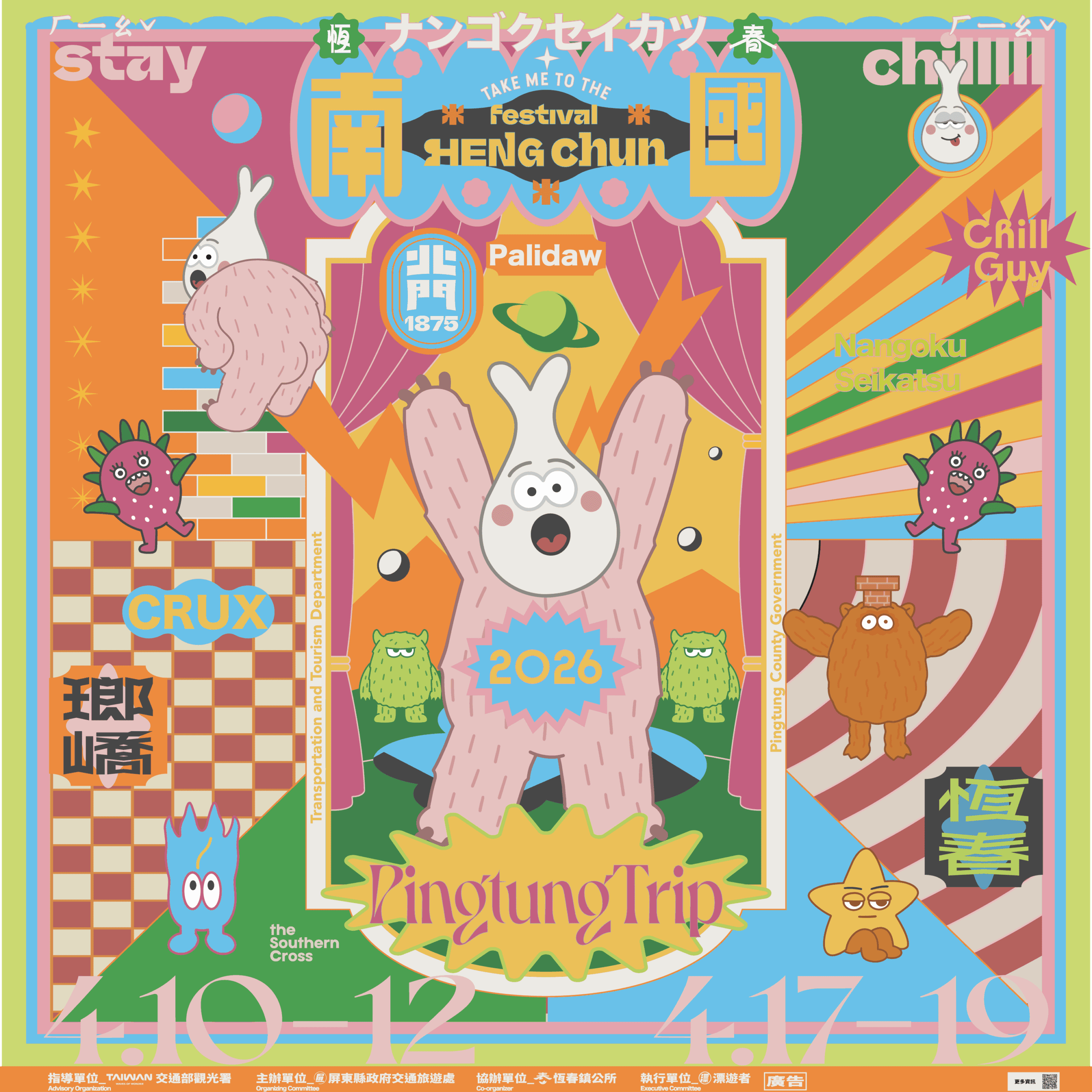 【記者戴英薇/屏東報導】 「2026南國國際生活節」將於今年4月10-12日及4月17-19日,連續兩週五六日在「恆春古城-北門草地」盛大舉辦,時間從下午3點至晚間10點,活動期間免費進場,舞台超過36組國內外音樂演出,更加入「百攤特色市集」、「小旅行」、「高鐵假期套票」、「工作坊DIY」、「街頭藝人」、「親子互動區」、「馬戲團遊街」及「四隻怪獸打卡大型主視覺氣模」!今年更持續推動環保行動,全面禁止使用一次性餐具,邀請旅人走進國境之南,在山海之間感受最鬆弛的南國生活節奏。