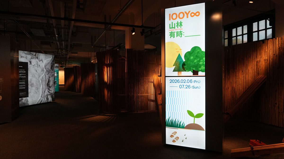 由農業部林業及自然保育署主辦的《100Y 山林有時:___》特展,自2026年2月6日至7月26日於臺灣設計館03展間登場,以「百年林業的四個轉身」為主軸,回顧臺灣自戰後接收以來的森林經營歷程,從資源調查、林業政策的幾度轉變,再到當代的人與自然和諧共生,呈現人與山林關係的演變。展覽結合歷史文獻、影像資料與沉浸式動線設計,帶領觀眾理解林業如何在不同時代中持續調整步伐。