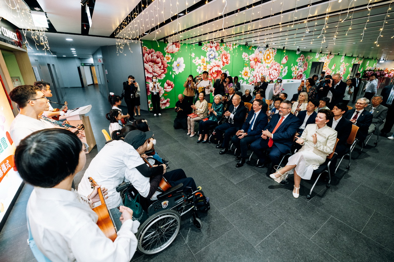 ▲罕見烏克麗麗班為科懋生技愛心園遊會開幕演唱。(圖/業者提供)