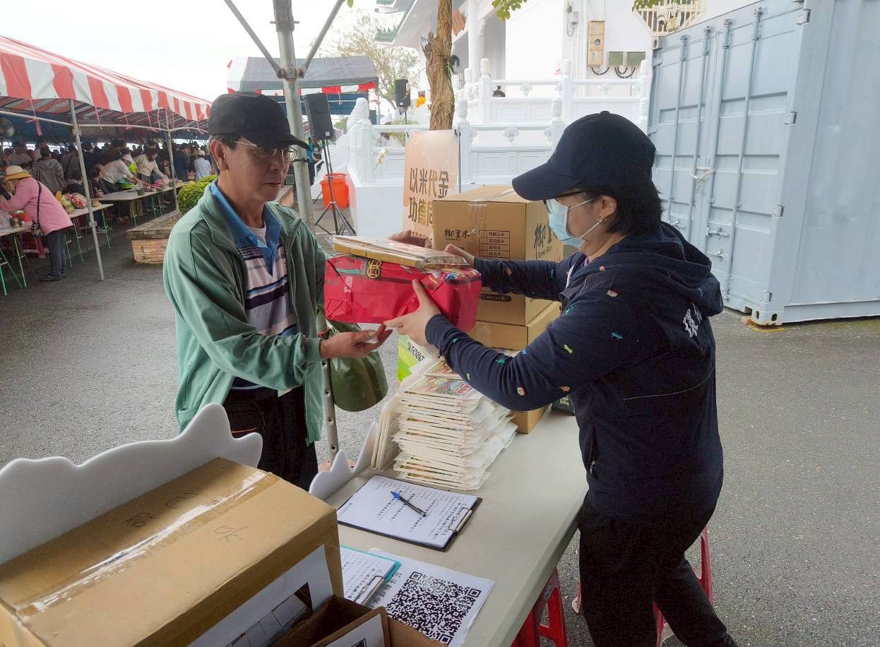 ▲花蓮縣政府於慈雲山法會辦理期間,設攤宣導新紙錢三燒及各項環保祭祀政策。