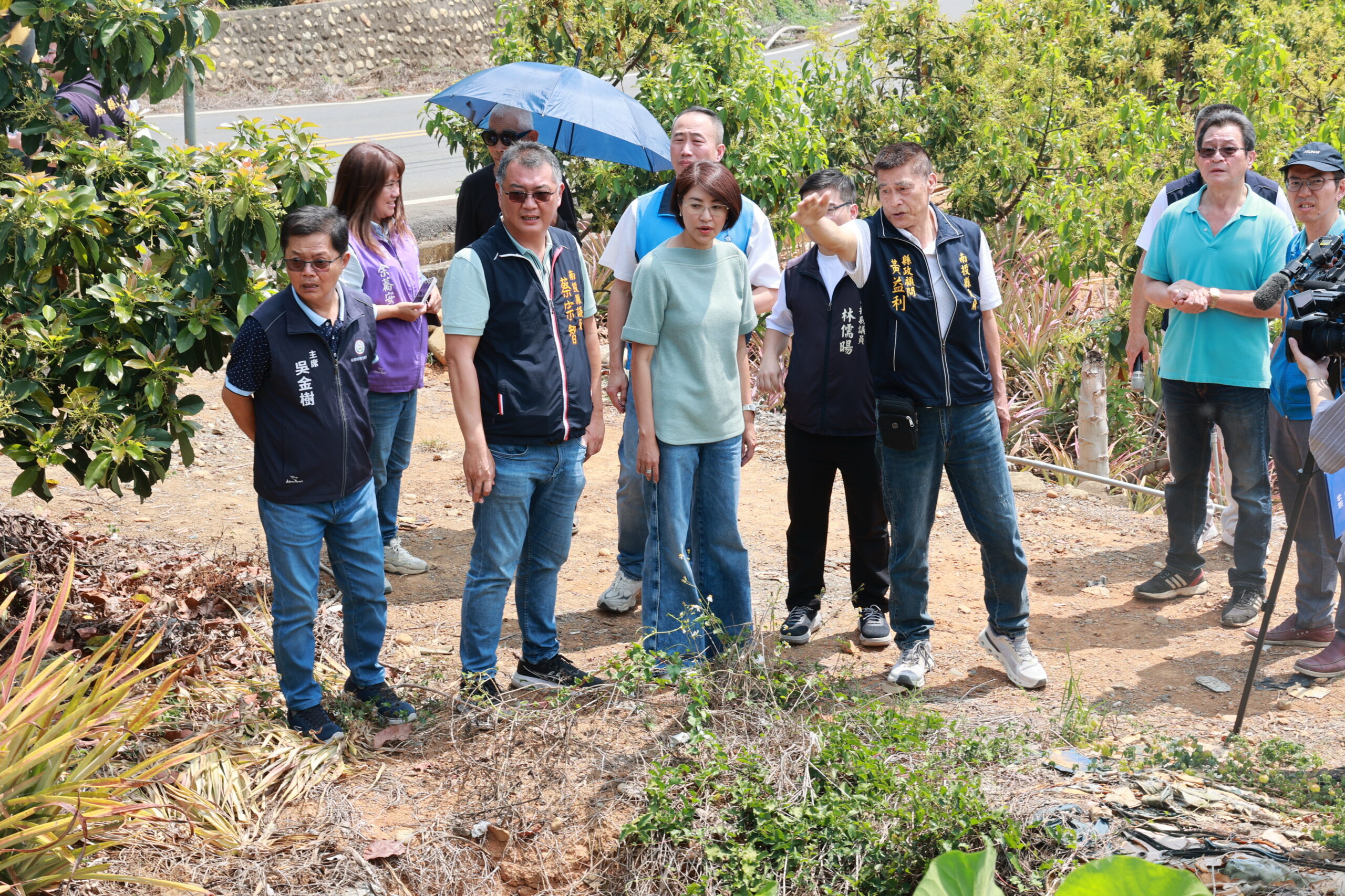 ▲許淑華實地勘查名間鄉土石崩塌與護坡受損情形,傾聽地方代表與農民訴求。(圖/南投縣政府提供)