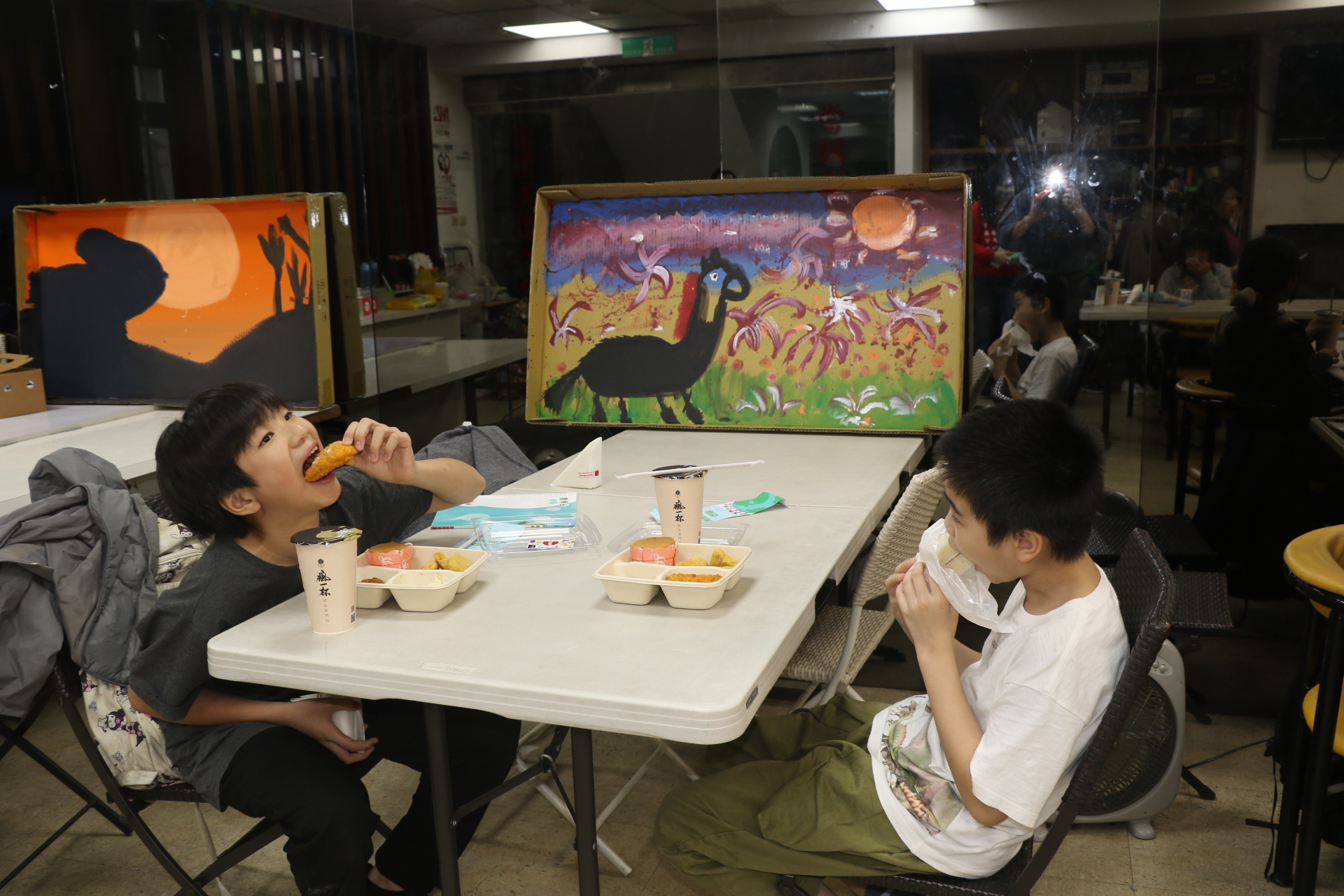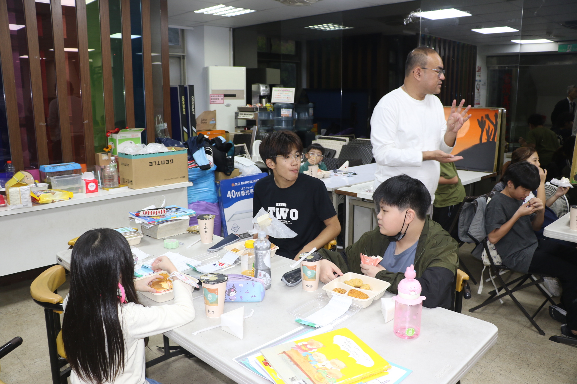 在捐贈前,有位就讀國中一年級的兒少,主動上台跳了一段街舞,她說非常喜歡舞蹈,謝謝小衛星據點老師不僅幫她複習功課,還教學才藝。有些兒少在等不及飯前禱告,便已被餐盒的香味吸引,禱告一結束,立即打開餐盒,大快朵頤。