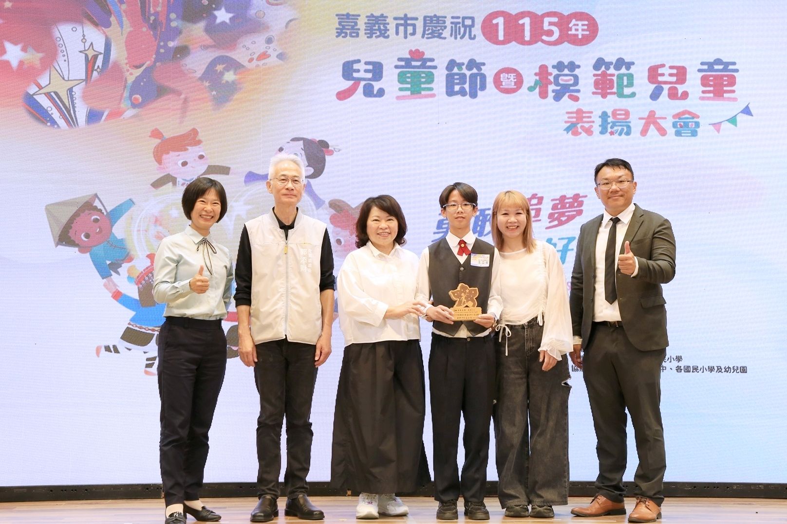 「嘉義市115年兒童節暨市模範兒童表揚大會」今(2)日在蘭潭國中活動中心熱鬧登場,市長黃敏惠除了頒發獎牌表揚幼兒園91名、國民小學106名模範兒童;更驚喜宣布嘉義市將自115學年度起,國中小學童午餐全面免費,市府將辦理追加預算7500萬元推行政策,全面照顧孩童食育需求。政策一經公布立刻獲現場家長掌聲歡呼。