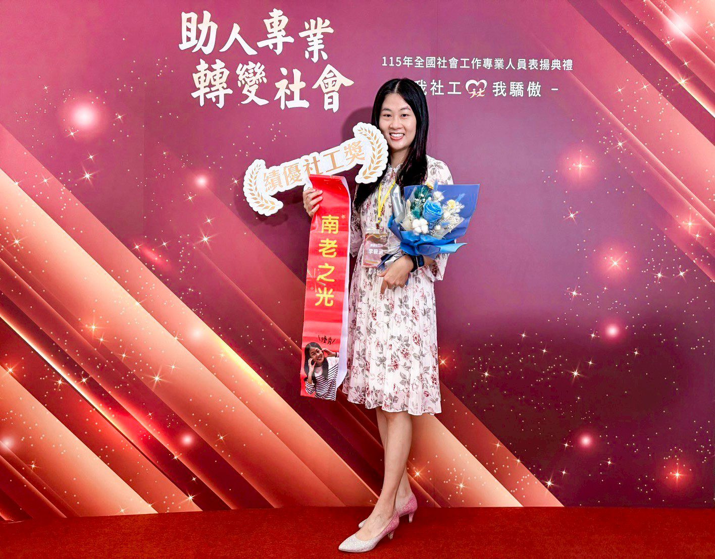 ▲南老之家社工李筱涵榮獲「115年度全國社會工作專業人員表揚—績優社工」殊榮。(圖/南老之家)