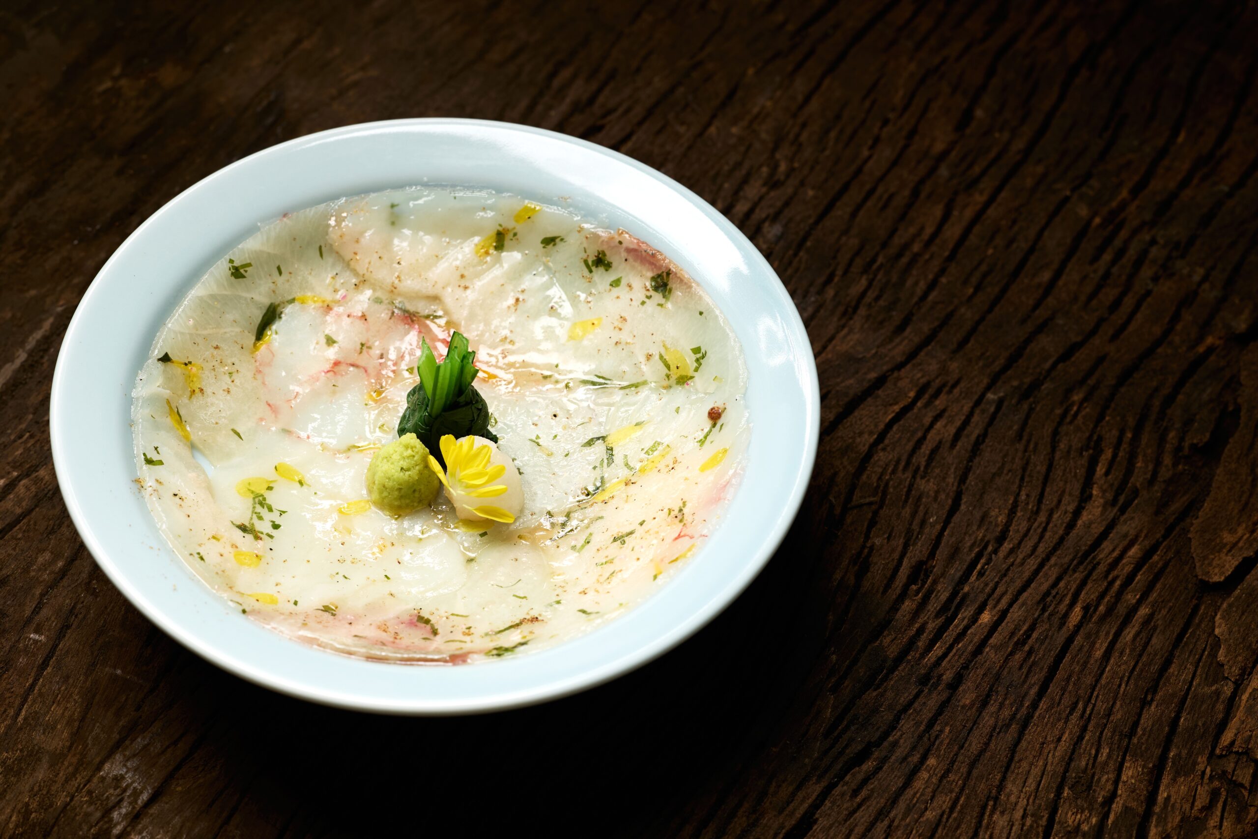 延續五週年「無界」的概念,《春絮》融合多元料理語彙,從日式技法、台南的魚冊,到秘魯風味醬汁,並結合金華火腿上湯與日式本枯節,呈現跨文化交融的餐桌表現。「絮」,指的是花朵生長的季節,也是花瓣隨風飄散的狀態。春天的變化,不在單一時刻,而是在過程中慢慢展開。