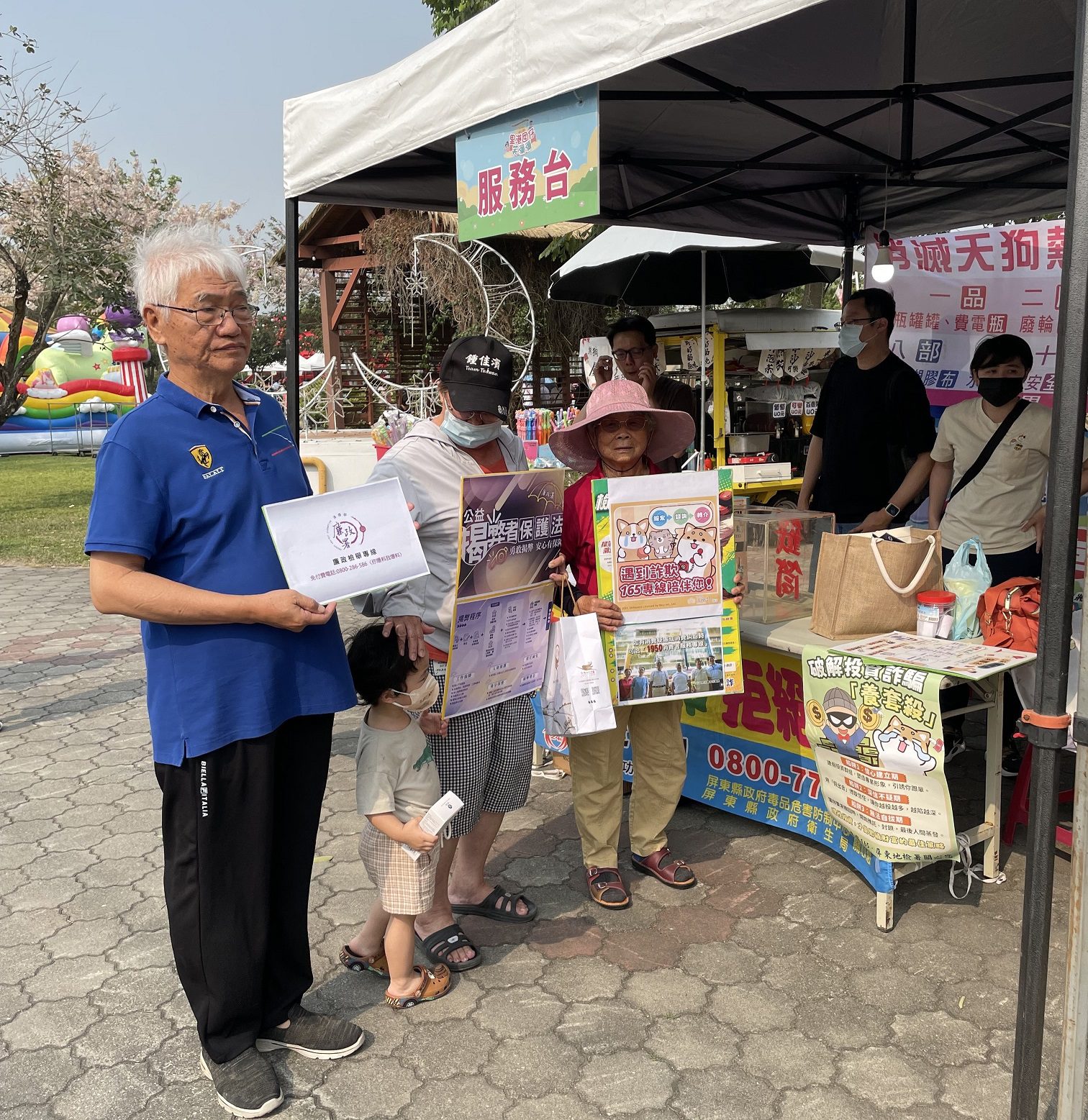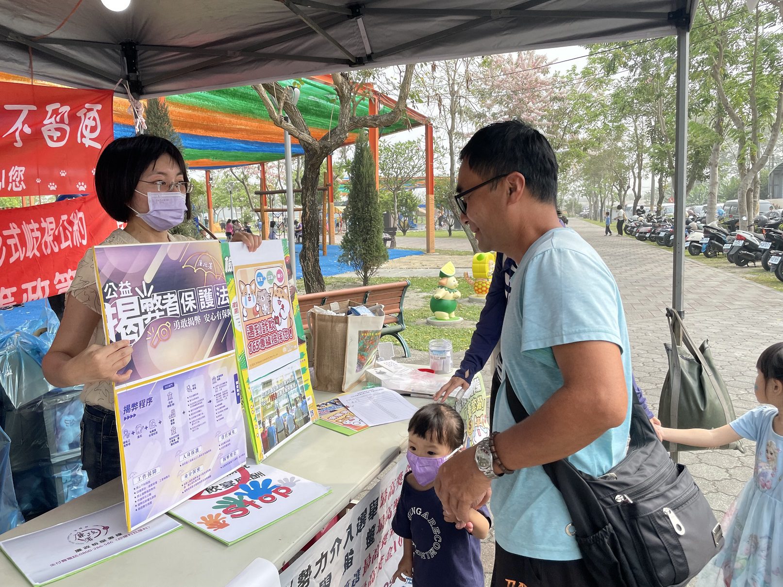 為深化民眾反貪倡廉意識,政風室在現場設置「社會參與暨反詐騙宣導活動」攤位,展示法務部廉政署提供的多元檢舉管道,以及反賄選、消費者保護、假訊息與反詐騙等宣導海報,提升民眾對廉能政府的認識。