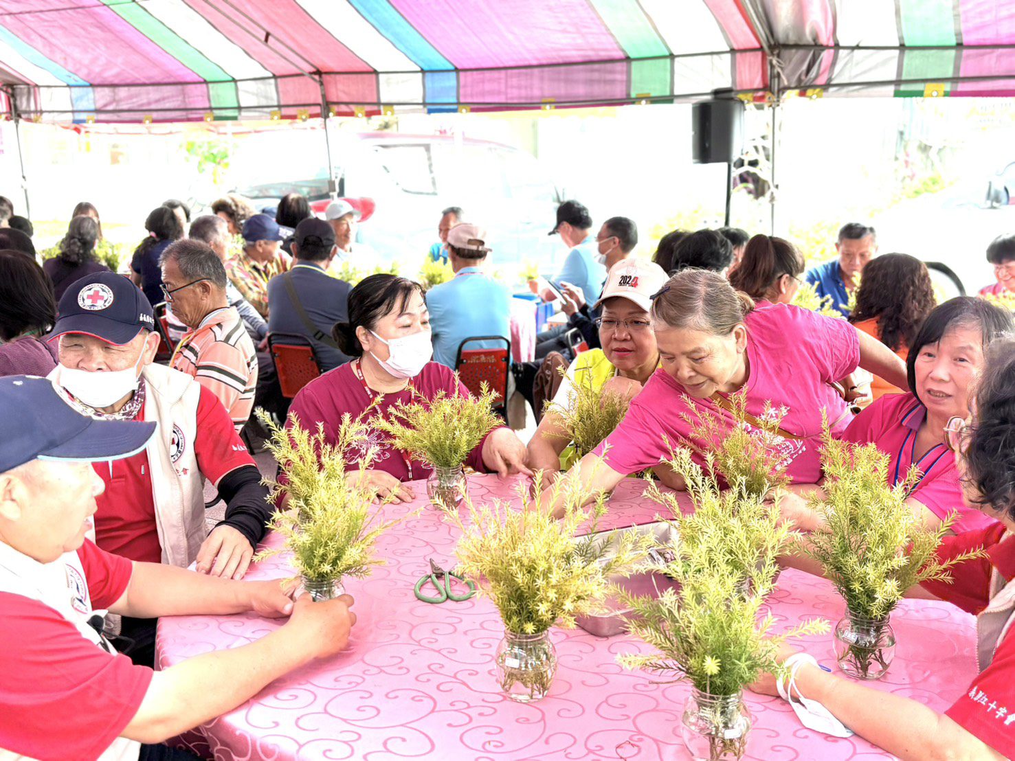 嘉義縣社會局攜手嘉義縣紅十字會7日帶領全縣18個鄉鎮市社區照顧關懷據點夥伴,齊聚竹崎鄉獅埜社區發展協會進行觀摩交流,藉此促進社區照顧服務經驗分享與正向發展。
