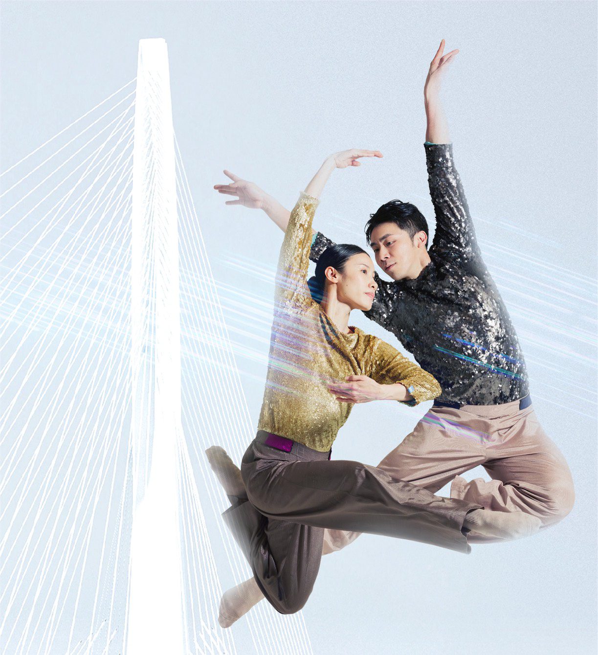作品中的「光」,不僅是可見的亮度,更被視為一種流動與傳輸的系統。光點如同微小單位,在空間中交會、聚合,形成持續運行的「光鏈」,象徵能量與訊息的不斷生成與傳遞。這樣的意象亦呼應當代臺灣作為科技島的狀態——從半導體、光電到通訊產業,「光」成為支撐連結世界的重要基礎。在橋上被看見的光,也映照出此刻臺灣持續連結、轉換與生成的動能。音樂設計則特別融入工程施工的敲擊聲響,使真實的勞動節奏成為作品的一部分,向所有參與建設的工程人員致上敬意。作品最終則回到「連結」的意象——橋讓原本分隔的兩端產生交流,舞蹈則讓情感得以流動。《光鏈》不只是對一座橋的回應,更是一份在重要時刻送出的祝福:願這座橋在未來持續連結土地與人心,讓交流與匯聚不斷發生,開啟新的時代想像。