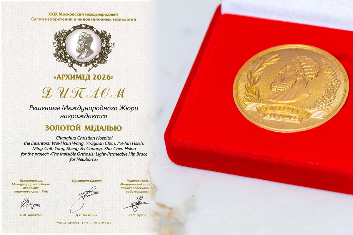 彰基醫學中心再傳捷報!骨科部副主任暨兒童骨科主任王偉勛醫師,日前參加俄羅斯莫斯科阿基米德國際發明展,以「新生兒透光型髖關節隱形矯具」勇奪金獎與特別獎,在全球數千件作品中脫穎而出,為台灣醫療創新再添國際榮耀。