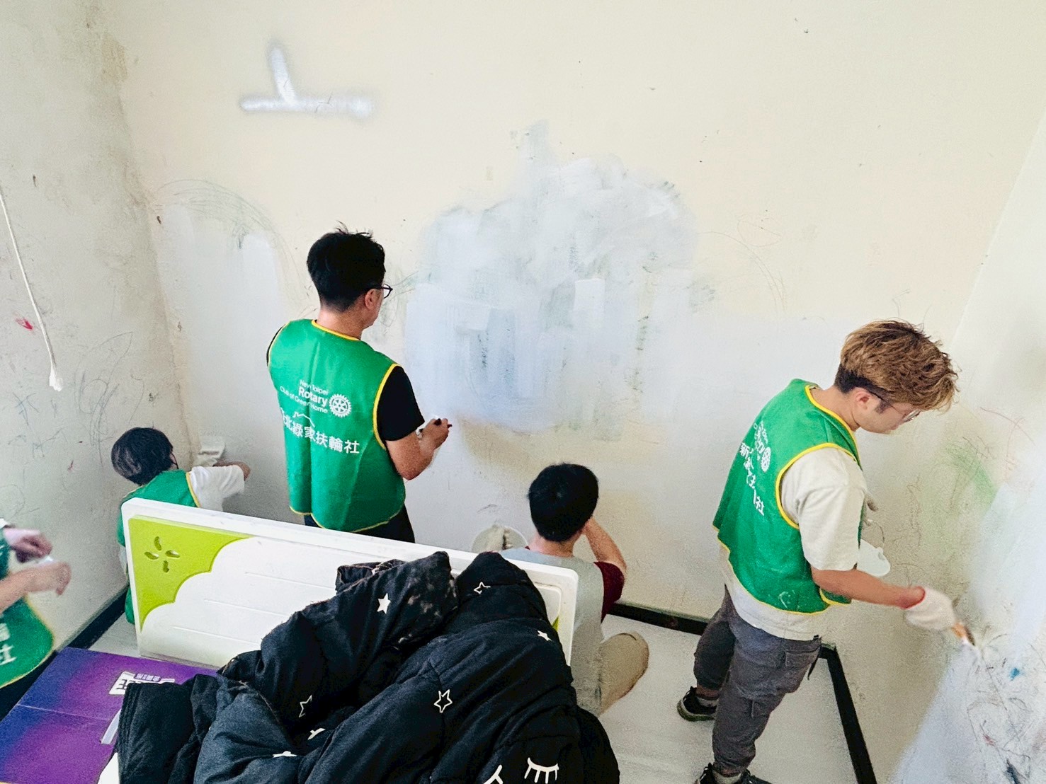 ▲綠家扶輪社友粉刷案家牆壁。(圖/新北市社會局 提供)