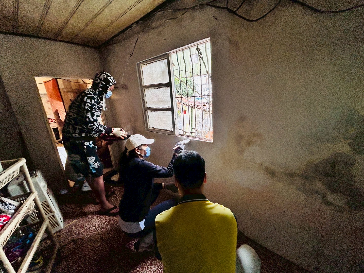 參與修繕的助理總監盧添富表示,在土城中央路修繕一戶案家時,案主是一位外籍母親,因喪偶獨自撫養兩名兒子,屋內凌亂、破損得好像被炸過,社友們不僅進行牆面粉刷、隔間修補、水管、馬桶修繕,還有抓漏等,也重新更換床組,這期間也謝謝社會局社工全力協助溝通。