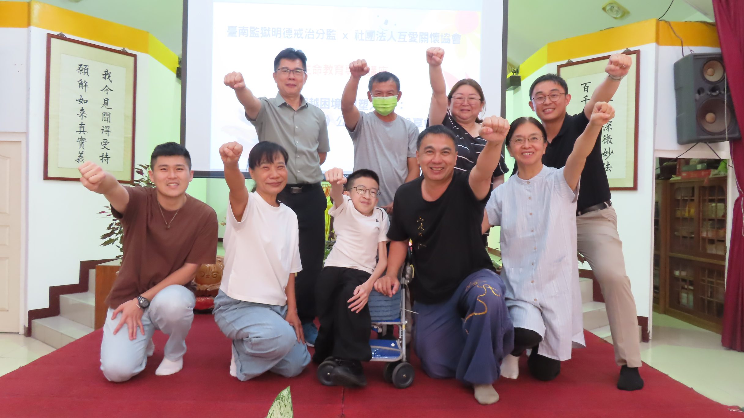 為引導毒癮收容人找回面對生命的勇氣與重塑自我的力量,法務部矯正署台南監獄明德戒治分監於今(10)日下午與「台灣身心安頓發展協會」、「社團法人互愛關懷協會」共同舉辦 「超越困境‧重塑人生:台灣超人電影映後分享會」,活動特別邀請紀錄片《台灣超人》劇中的靈魂人物—書藝家王志揚老師、「小巨人」孫翊倫等2名親臨戒治分監,與收容人進行一場跨越身體限制與超越生命的深度對談。