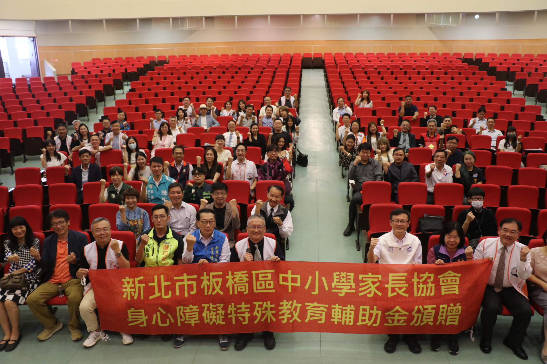 ▲板橋區中小學家長協會在光仁中學懷仁館捐贈93萬元給板橋區32所高、國中、小學校。(圖/新北市社會局 提供)