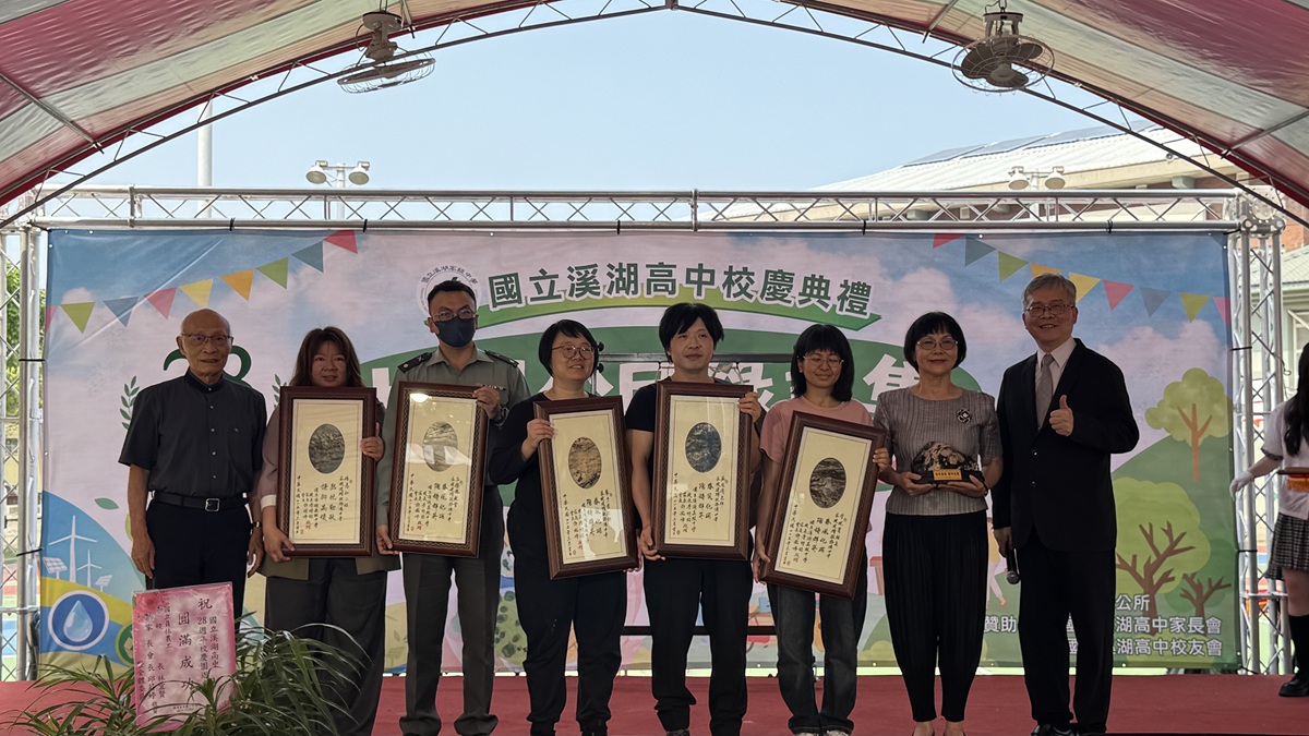 在校慶慶祝典禮中,李明昭校長特地頒贈於溪高服務屆滿10、20及30週年同仁紀念品,李校長說:「很高興今年迎來第一位在溪高服務滿30週年的同仁,這是從溪高設於彰商的籌備處起算,也因為有這些優質的同仁,長期為學校盡心付出,貢獻良多,溪高才能培育超過1萬位的社會棟樑,各位貴賓也可從校園中,展示的學生自主學習作品中看出溪高學生的學術實力。」