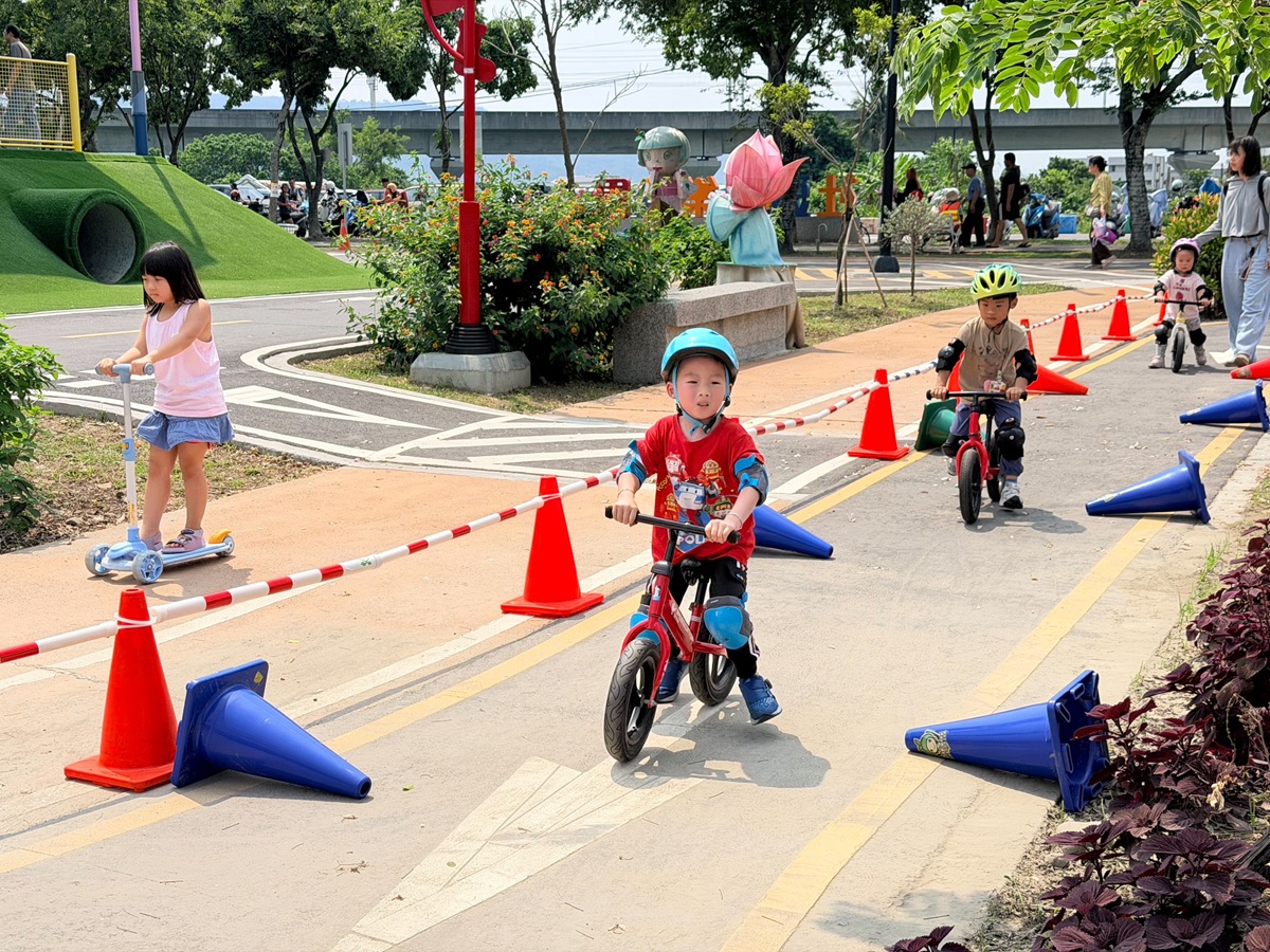 ▲結合公園內交通安全主題步道,規劃3至6歲幼童滑步車體驗,從遊戲中建立正確交通觀念。(圖/記者蕭麗鳳攝)