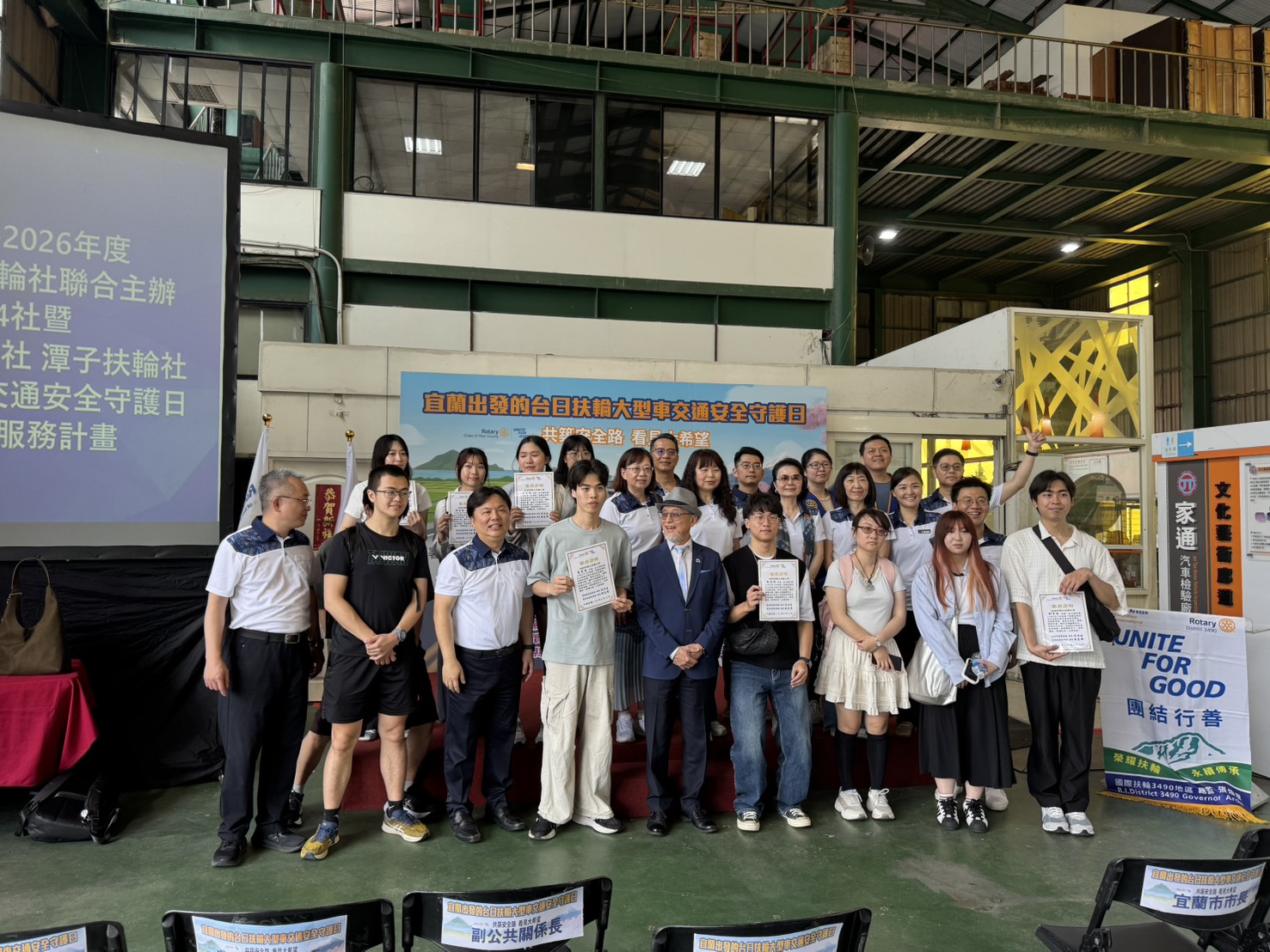 由宜蘭東區扶輪社、宜蘭北區扶輪社共同主辦的「宜蘭出發的台日扶輪大型交通安全守護日 共築安全路-看見希望」社會服務,4月12日上午在宜蘭市家通汽車檢驗場舉行,結合宜蘭地區14個扶輪社與宜蘭東區社的日本姐妹社秋田本莊東扶輪社及台中潭子、台北龍鳳兩個兄弟社攜手合作,推動一場融合交通安全教育、國際文化交流與關懷弱勢的公益行動。
