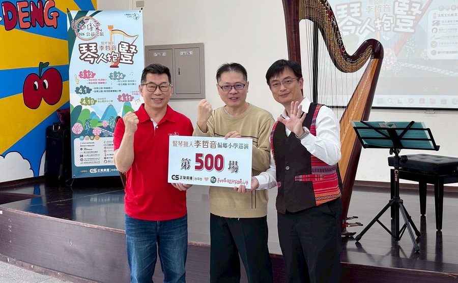 正聲廣播公司台中台2026公益之旅「聲動傳愛~琴人抱豎」偏鄉音樂會,4月10日及11日再與豎琴演奏家李哲音,遠赴臺灣海拔最高的中小學「臺中市立梨山國民中小學」以及臺中最偏遠的小學「臺中市和平區平等國民小學」播撒音樂種子,為這波公益之旅劃下圓滿句點,更寫下李哲音個人自2014年啟動偏鄉小學演出的第500場紀錄。