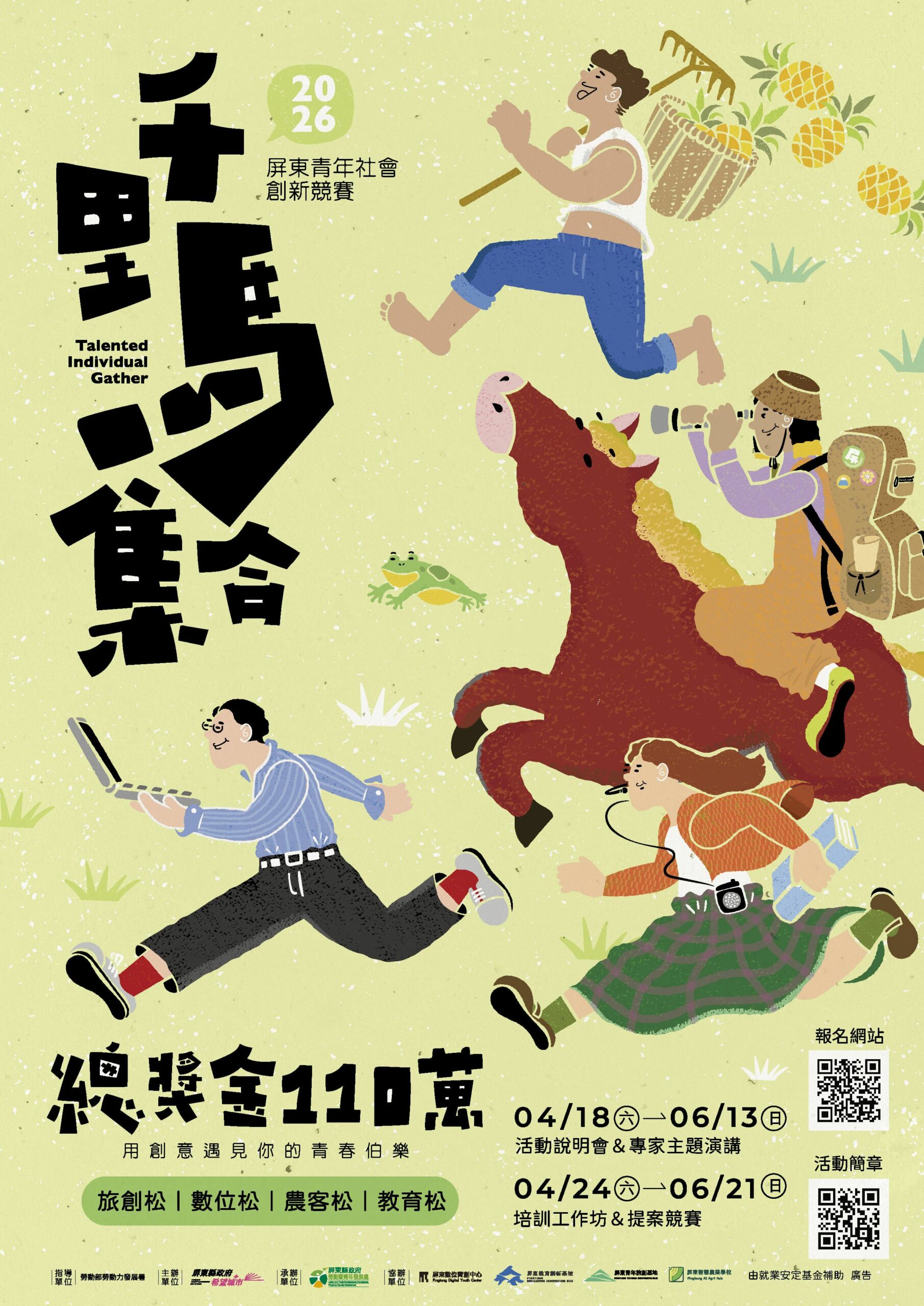 【記者戴英薇/屏東報導】  屏東縣政府持續推動青年返鄉與地方創生,今年再度推出年度指標性競賽「千里馬集合!2026屏東青年社會創新競賽」,邀請全台青年帶著創意與行動力,透過提案實作與跨域合作,讓創意不只停留在想像,而是真正落地實踐。