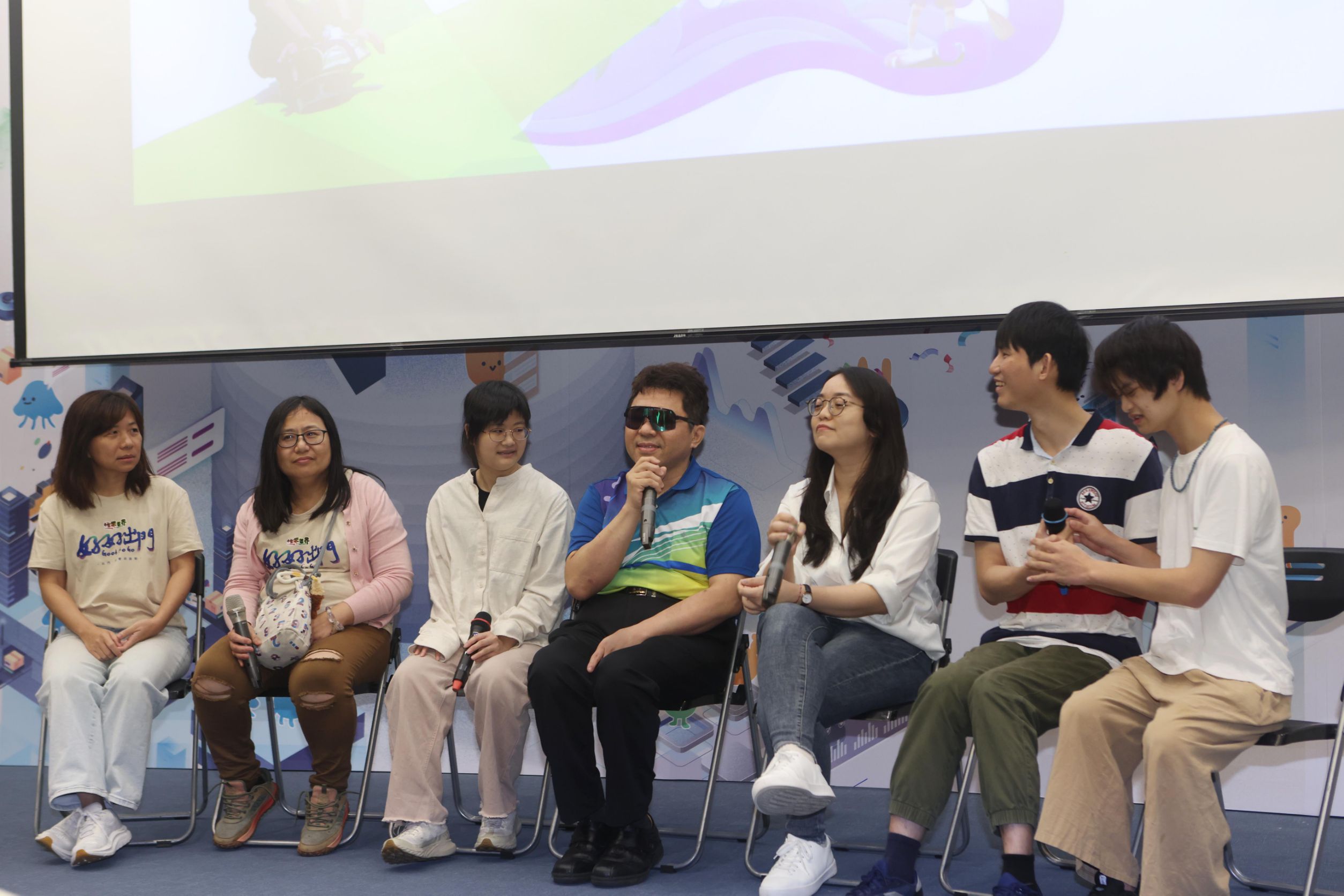 放映後的座談交流成為全場最動人的時刻。現場除提供同步聽打服務外,視聽雙障者黃靖騰透過全盲夥伴以「指背語」即時翻譯,使溝通更加流暢,也讓觀眾近距離認識這項以點字原理在手背傳遞訊息的溝通方式。