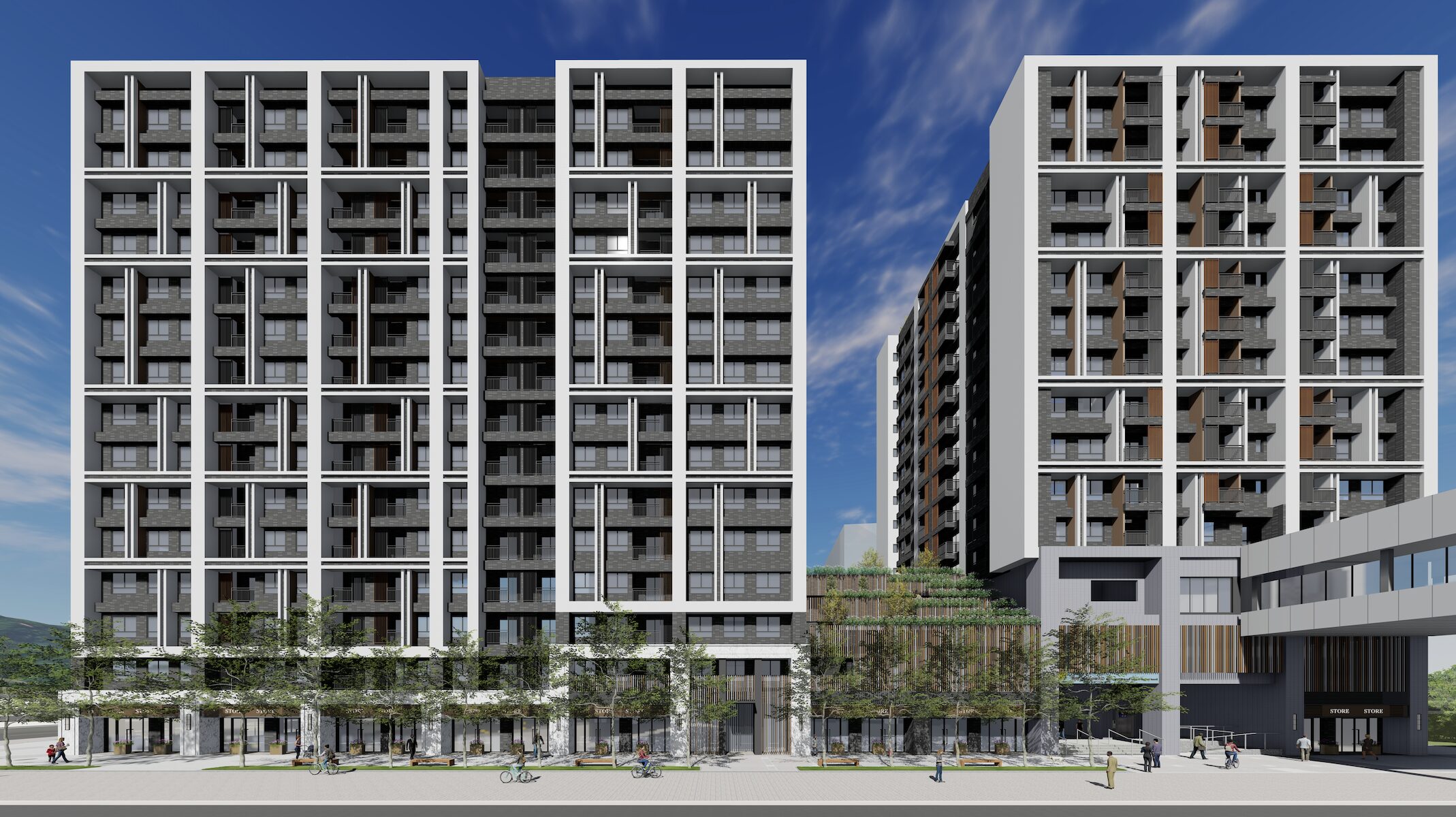 侯友宜進一步說明,本案提供266坪公益空間,將設置長照、日照中心及社區心理衛生中心辦公室進駐;另提供商業發展及就業機會,1樓規劃17間店鋪,2樓以上提供379戶住宅,3樓可連通三峽站2號出入口,實現「到站即到家」的便利生活,預計2029年完工交屋,擴充三峽老街區及北大特區更多元的服務機能。此外,捷開大樓設計兼具永續理念,將取得智慧建築及銀級綠建築雙認證標章,成為綠色交通與大眾運輸結合的建築典範。