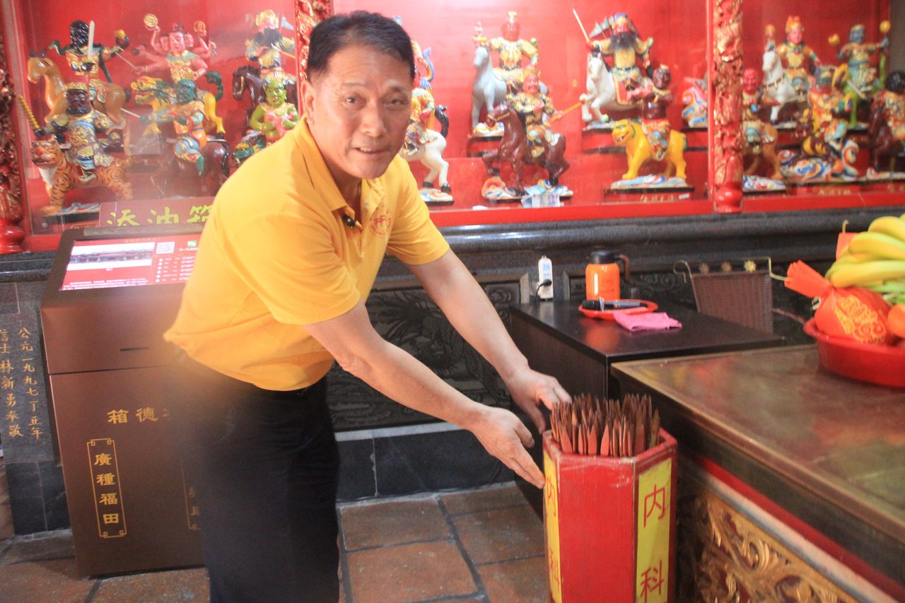顏國強比劃著東宮後殿,說明在1990年代,台灣同胞就已經捐款贊助青礁祖廟重修,之後兩岸往來不絕,保生文化節也已經連續辦了19年。
