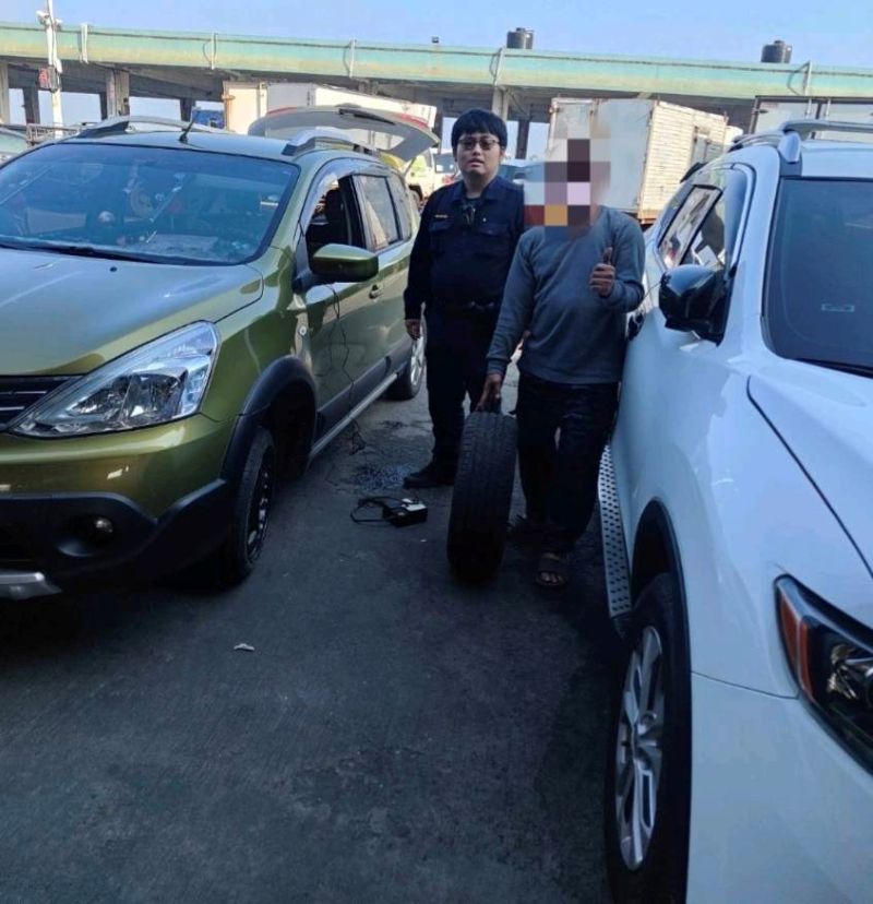 民眾施男(48年次)駕車時察覺車身搖晃、胎壓明顯不足,因擔心行車安全不敢貿然行駛,員警獲悉後,立即安撫民眾情緒,並利用巡邏車配備之車用打氣機協助充氣,順利讓氣壓回復正常,細心提醒民眾應儘速前往保養廠徹底檢查,以確保後續行車安全,民眾對警方及時伸出援手表示深切感謝。