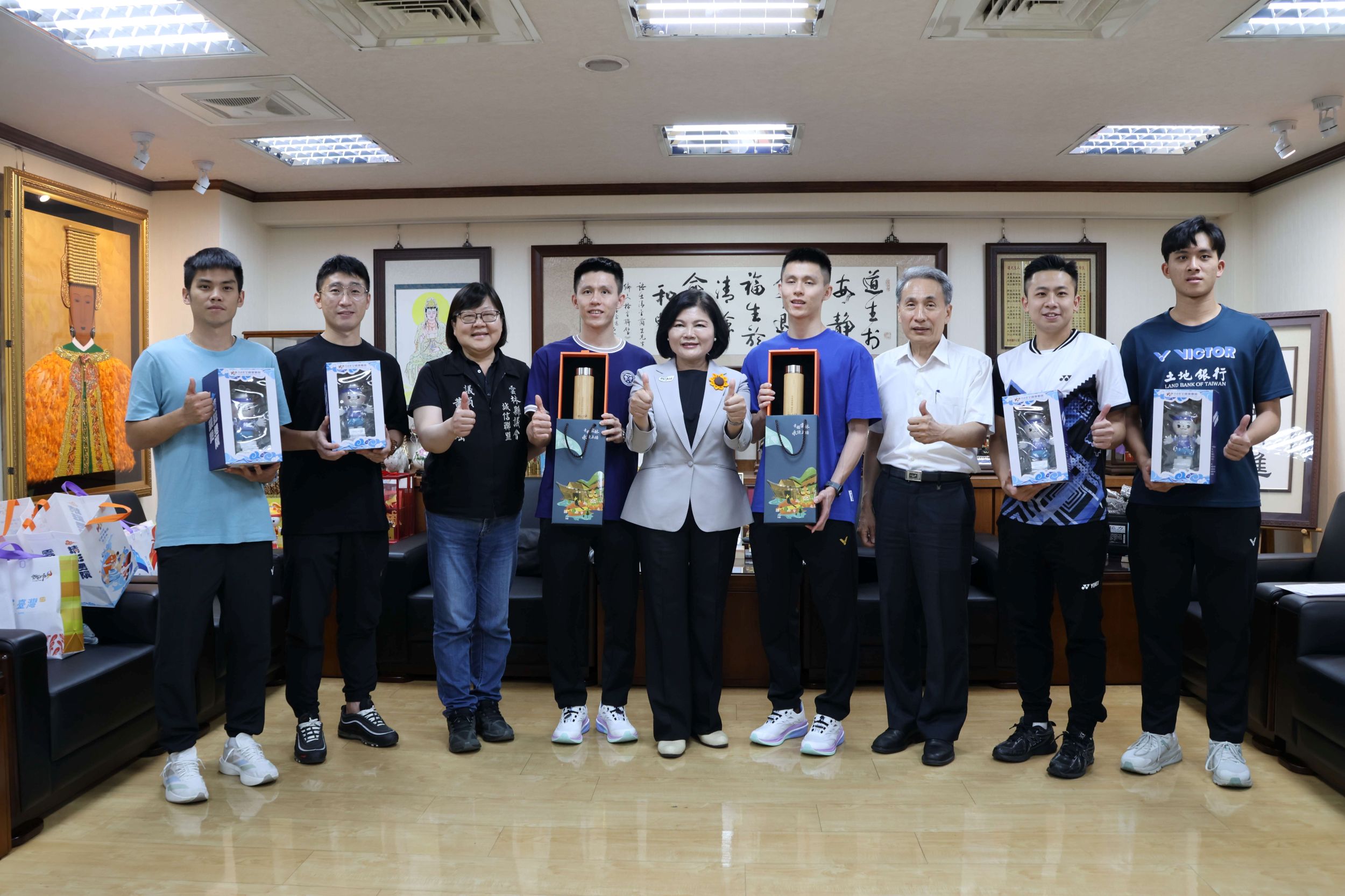 張麗善說,兩人此次奪冠不僅提升我國於國際羽壇之能見度,亦為雲林縣體育發展注入強勁動能,對兩位選手的傑出表現深表肯定與嘉許,期勉持續精進,前進2028奧運! 也希望以後也能夠回到家鄉來培育學弟學妹。縣府將持續關注選手訓練與參賽情形,適時提供必要資源與協助,期使本縣運動選手持續於國際舞台嶄露頭角、爭取佳績,為國爭光,並帶動整體體育環境穩健發展。