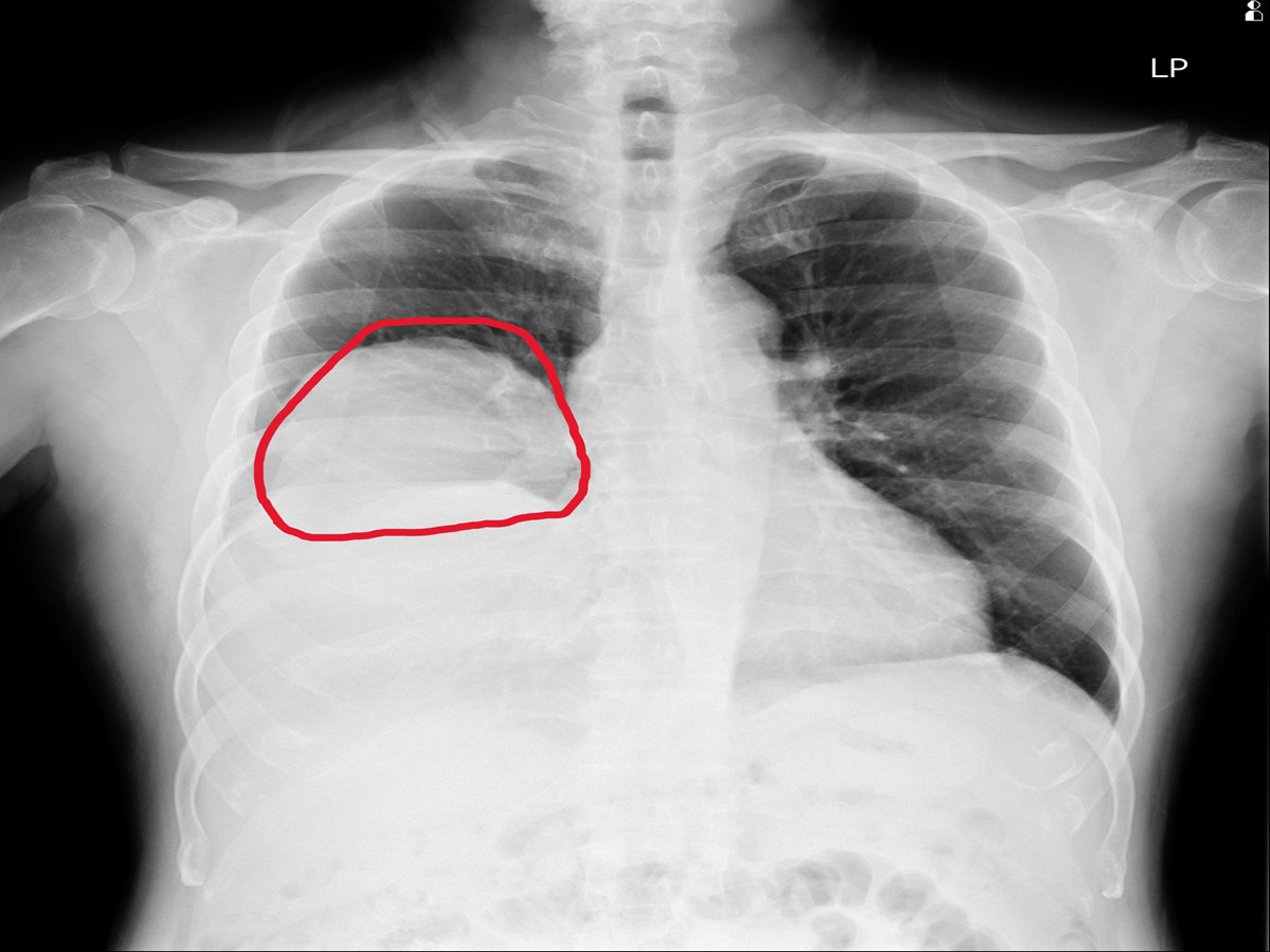 ▲經進一步透過胸部X光與電腦斷層檢查,發現右肺有一顆巨大腫瘤,影像顯示約15×11公分。(圖/員榮醫院提供)