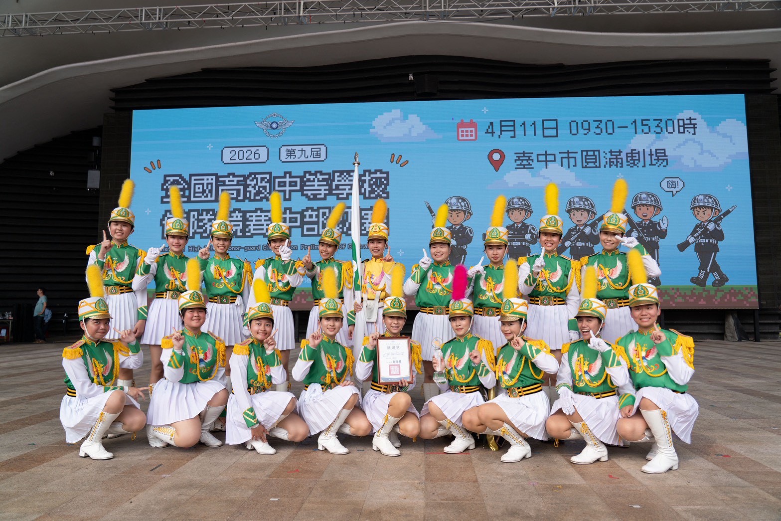 ▲花女儀隊拿下全國高中儀隊競賽中區初賽冠軍。