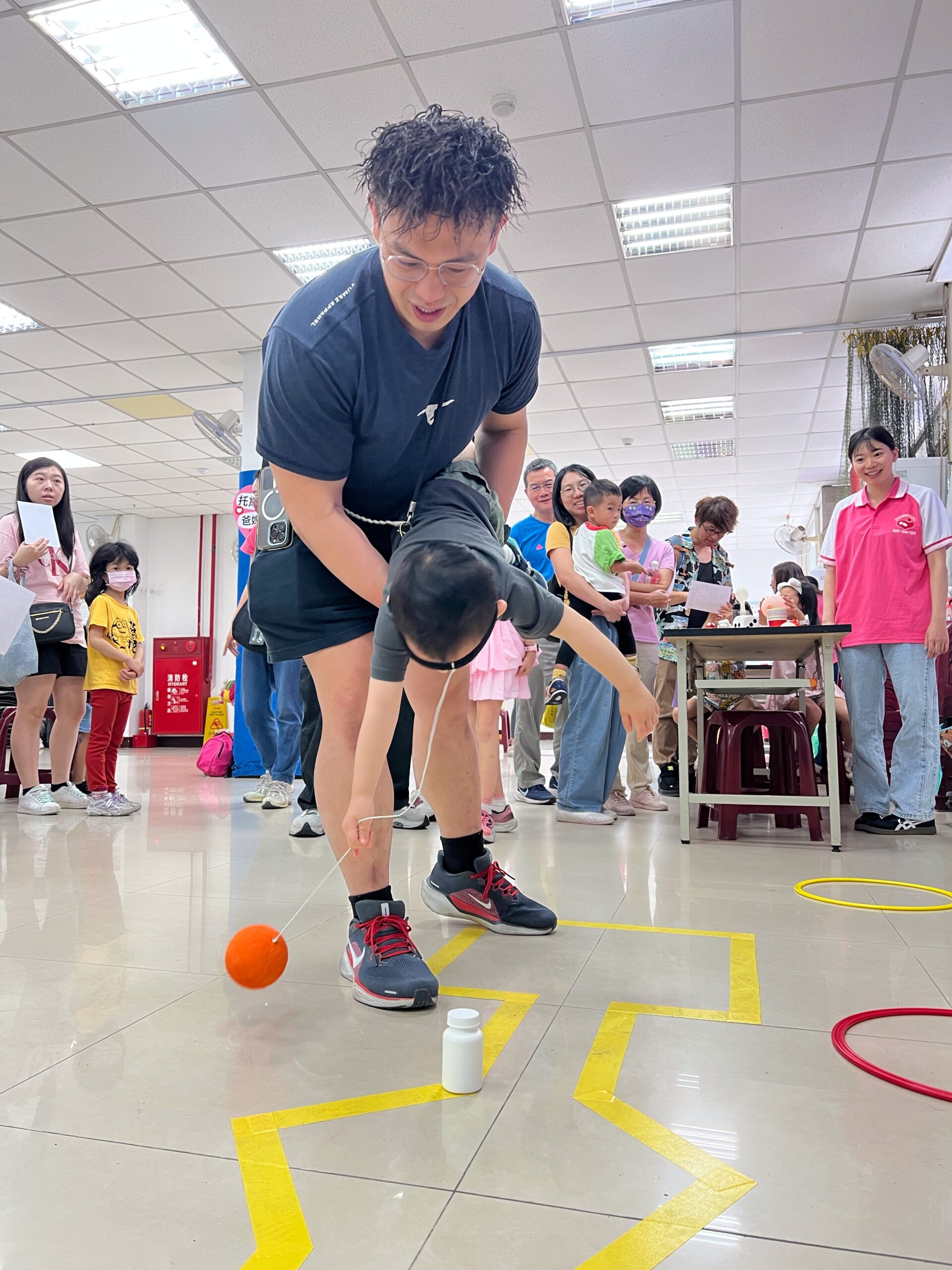 園遊會由專業托育人員擔任關主,為不同年齡的幼兒設計多元有趣的闖關活動,讓民眾在遊戲中,認識托育工作的專業性與重要性,也讓托育人員有機會與社區建立更緊密的連結。