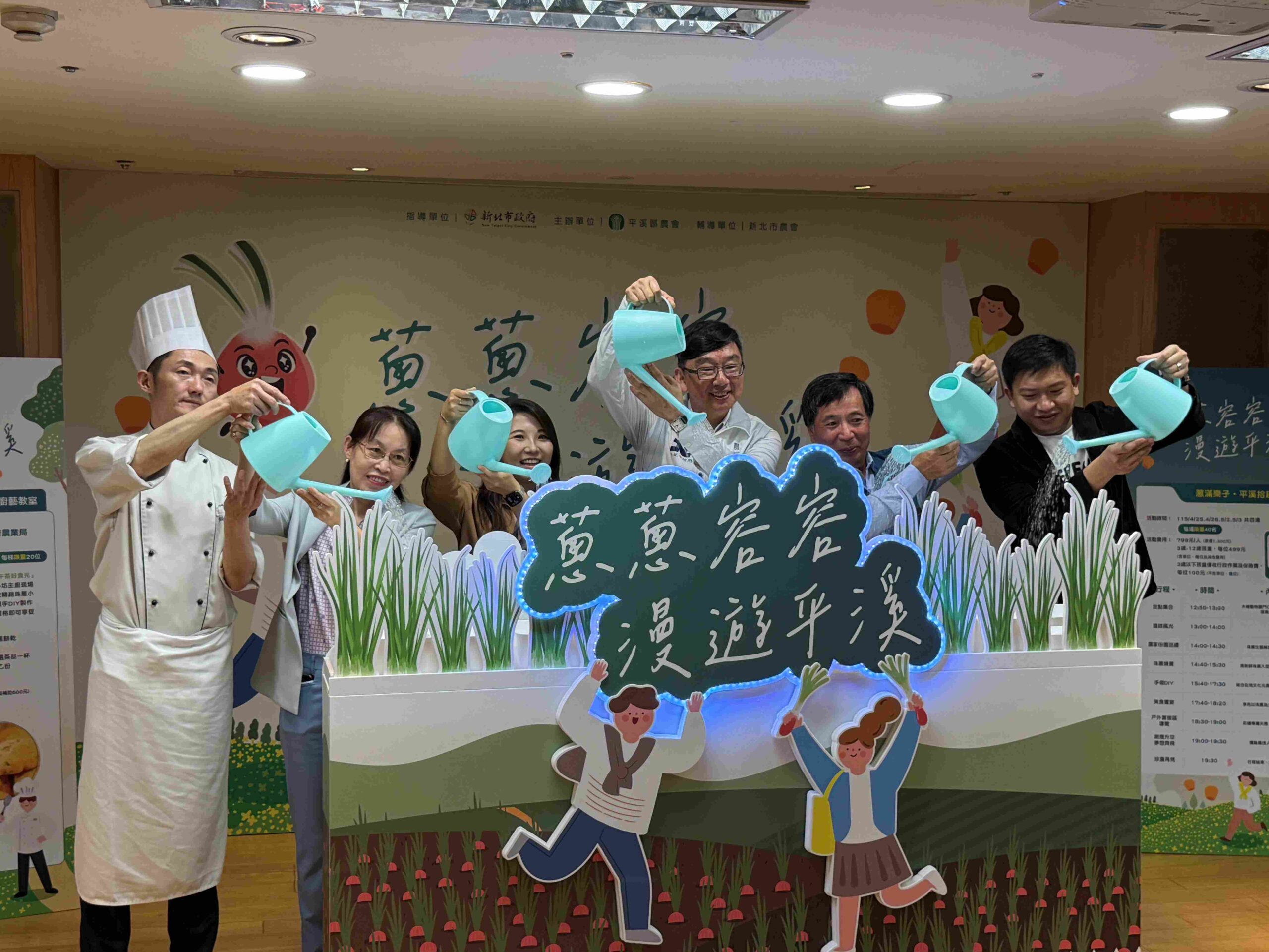 ▲農業局長諶錫輝(左6)(14)日出席「蔥蔥容容‧漫遊平溪」新北珠蔥上市記者會,宣布珠蔥產季開跑。(圖/新北市農業局 提供)