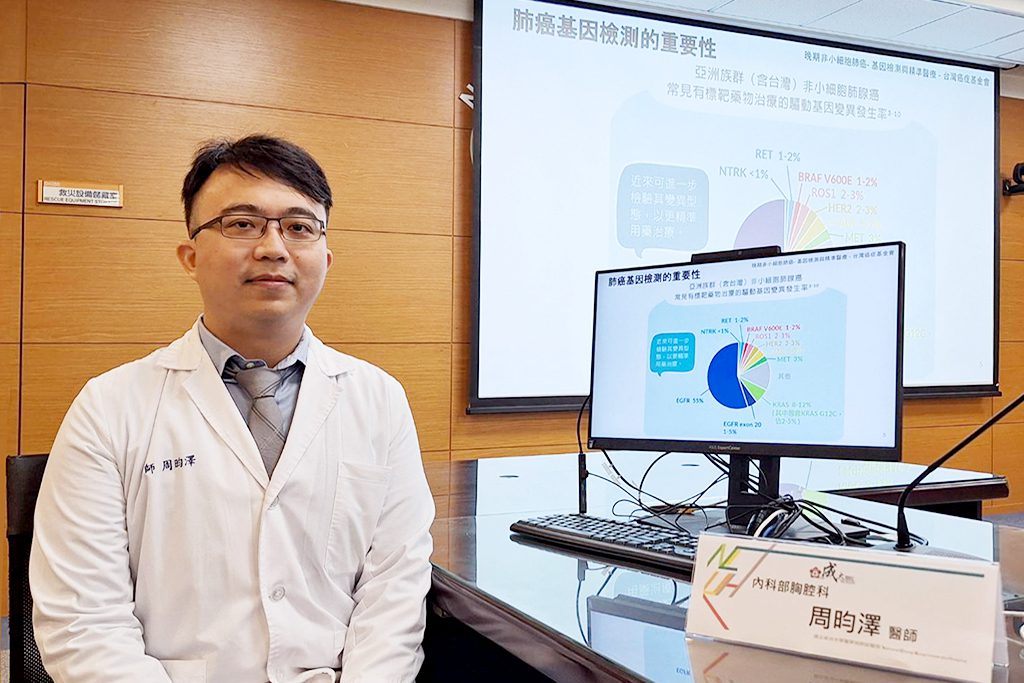 成大醫院胸腔內科周昀澤醫師表示,近年來肺癌治療已邁入「精準醫療」時代。病人過往都採用相同的化學治療,現今透過基因檢測,找出腫瘤的特定突變基因,即可「對症下藥」,使用專屬標靶藥物,大幅提升治療成效,並有效減少副作用。