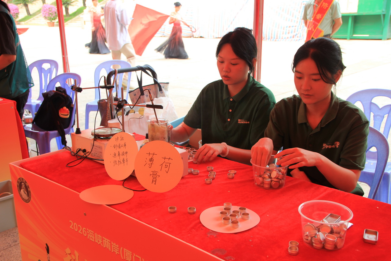 ▲藥學系的學生在現場指導自製薄荷膏。(圖/記者洪肇君攝)