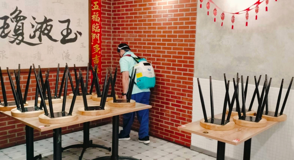 ▲世界豆漿大王4月14日下午完成全店環境清潔與消毒作業。(圖/記者孟憲玉攝)