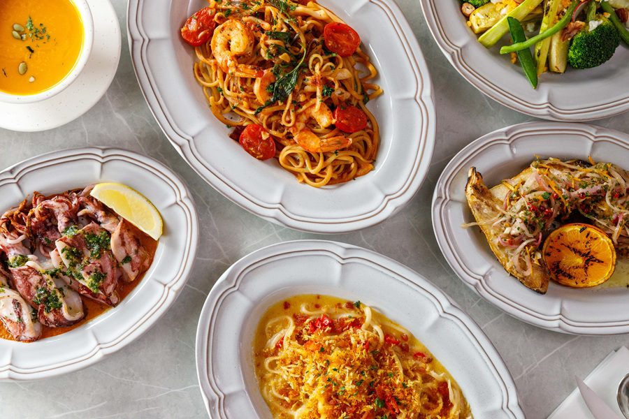 義大利麵同步升級,自製麵體更加彈牙有勁。「辣味番茄海鮮特內特麵」以鮮蝦與中卷為基底,融合酸豆、橄欖與煙燻辛香,呈現酸鹹辣交織的濃郁風味;「烏魚子檸香特內特麵」則以魚露與雞湯堆疊鮮味,搭配炙烤烏魚子與酥脆麵包屑,最後以檸檬清香收尾,展現細膩平衡。