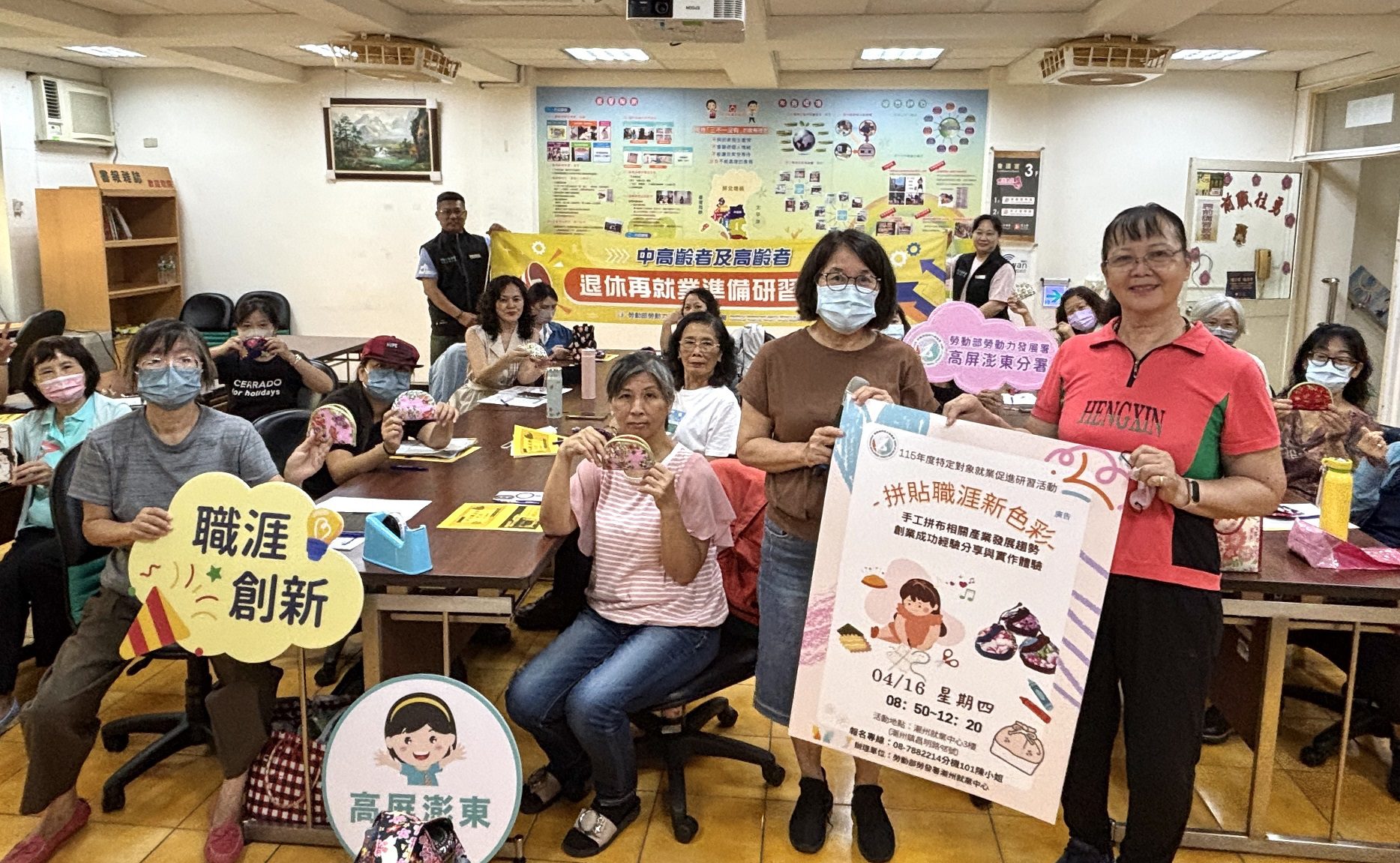 【記者范家豪/潮州報導】 為協助特定對象求職者開拓就業視野並重拾職場自信,勞動部勞動力發展署高屏澎東分署潮州就業中心舉辦「拼貼職涯新色彩」就業促進研習活動。特別邀請被譽為「客家拼布界LV」的「客家手工拼布工作坊」負責人張李金嬌老師現身說法,帶領20名學員從產業趨勢分析到實作體驗,深入探索手工拼布產業的就業市場與微型創業商機。
