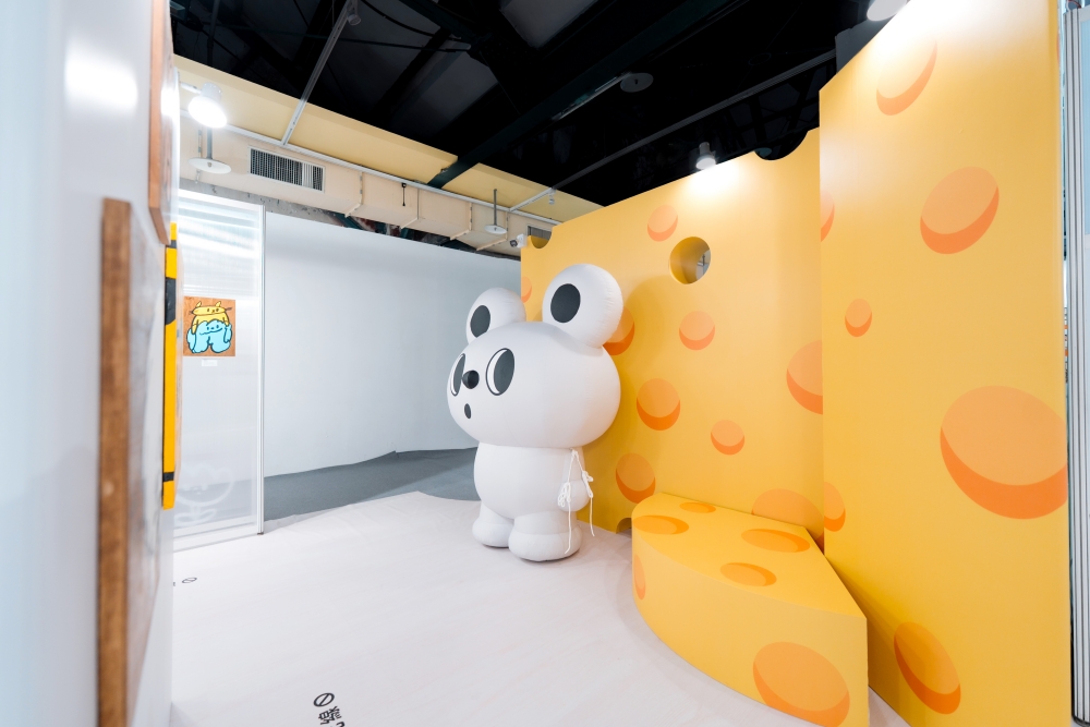另一亮點則是將藝術家筆下角色全面「空間化」,把插畫從平面畫作轉化為可進入、可停留的情感場域。包括台灣藝術家57(吳騏)的巨型氣偶「夢吉拉」結合互動體驗,探索情緒與身體感受之間關係;Foufou Bunny 則透過可參與的創作,引導民眾以手部操作建立與角色連結。每間情感檔案室皆以不同主題情緒為核心,陪伴民眾以自身步調閱讀作品、安放心情。