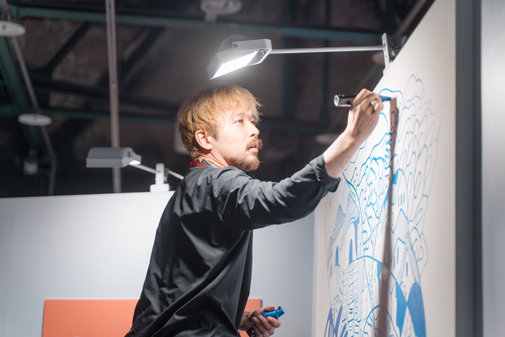 ▲ 日本插畫家 Daffy 以「空白」哲學詮釋留白情緒,粉絲們可透過近距離的接觸與互動,感受創作魅力。(圖/拾光傳媒提供)