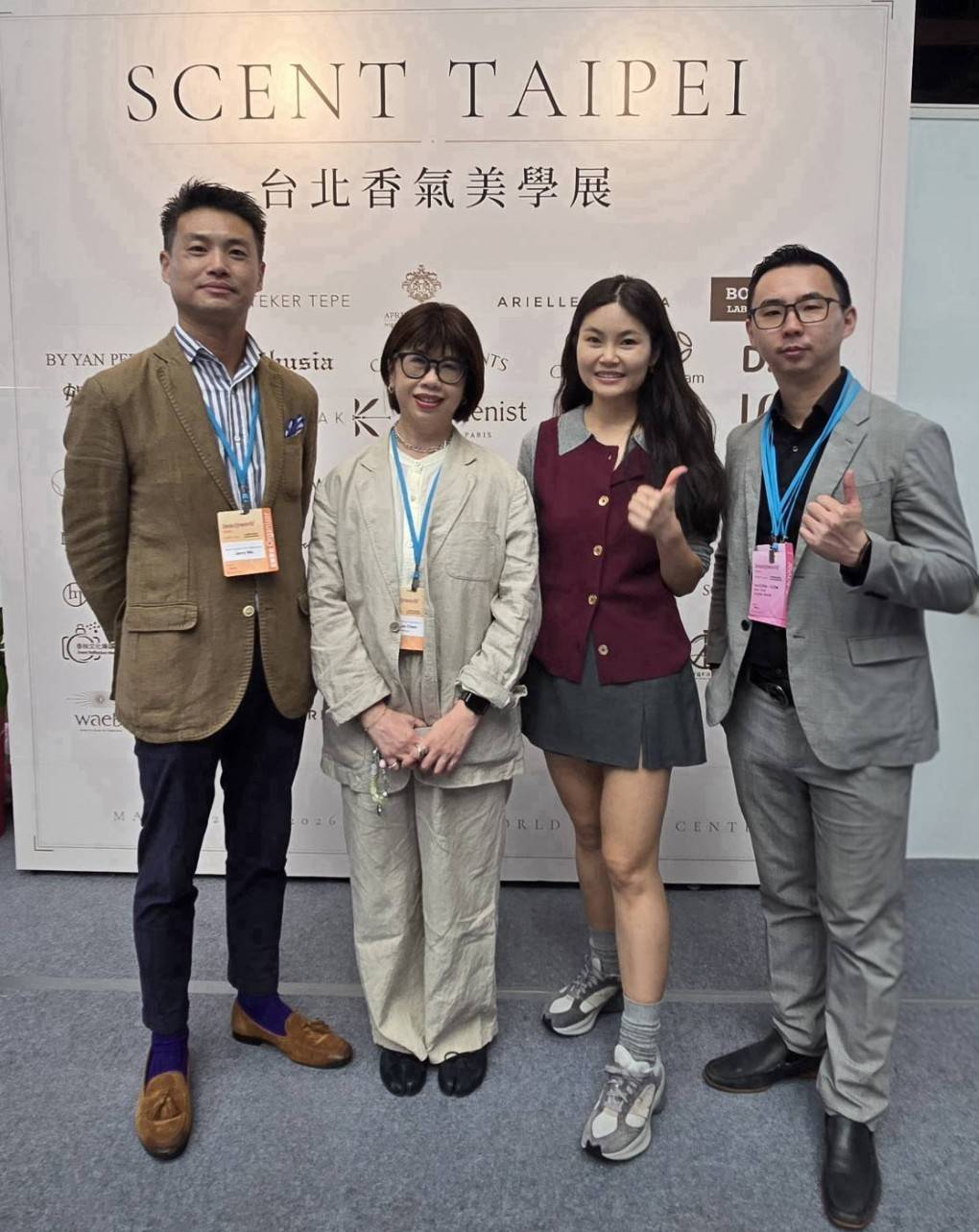 ▲台灣首屆金馥獎策展推手-(左起)法蘭克福展覽台灣分公司 吳承勳Jerry 、陳煦淑Veronica/ ISSA國際香氛藝術協會策展人謝凱薇Kaiwei、理事長何宗禧Vic Ho。(圖/SCENT TAIPEI)
